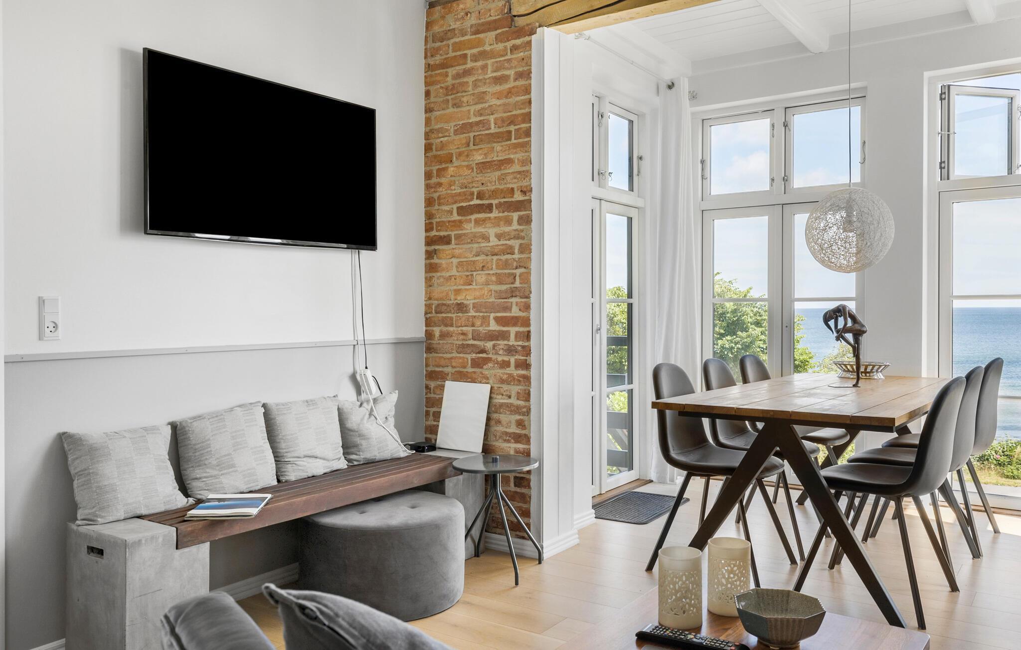 Glæd jer til denne ekstraordinært lækre ferielejlighed med vidunderlig havudsigt fra 1. sal. Kun 50 meter fra klippekyst og 350 meter fra en fin sandstrand.