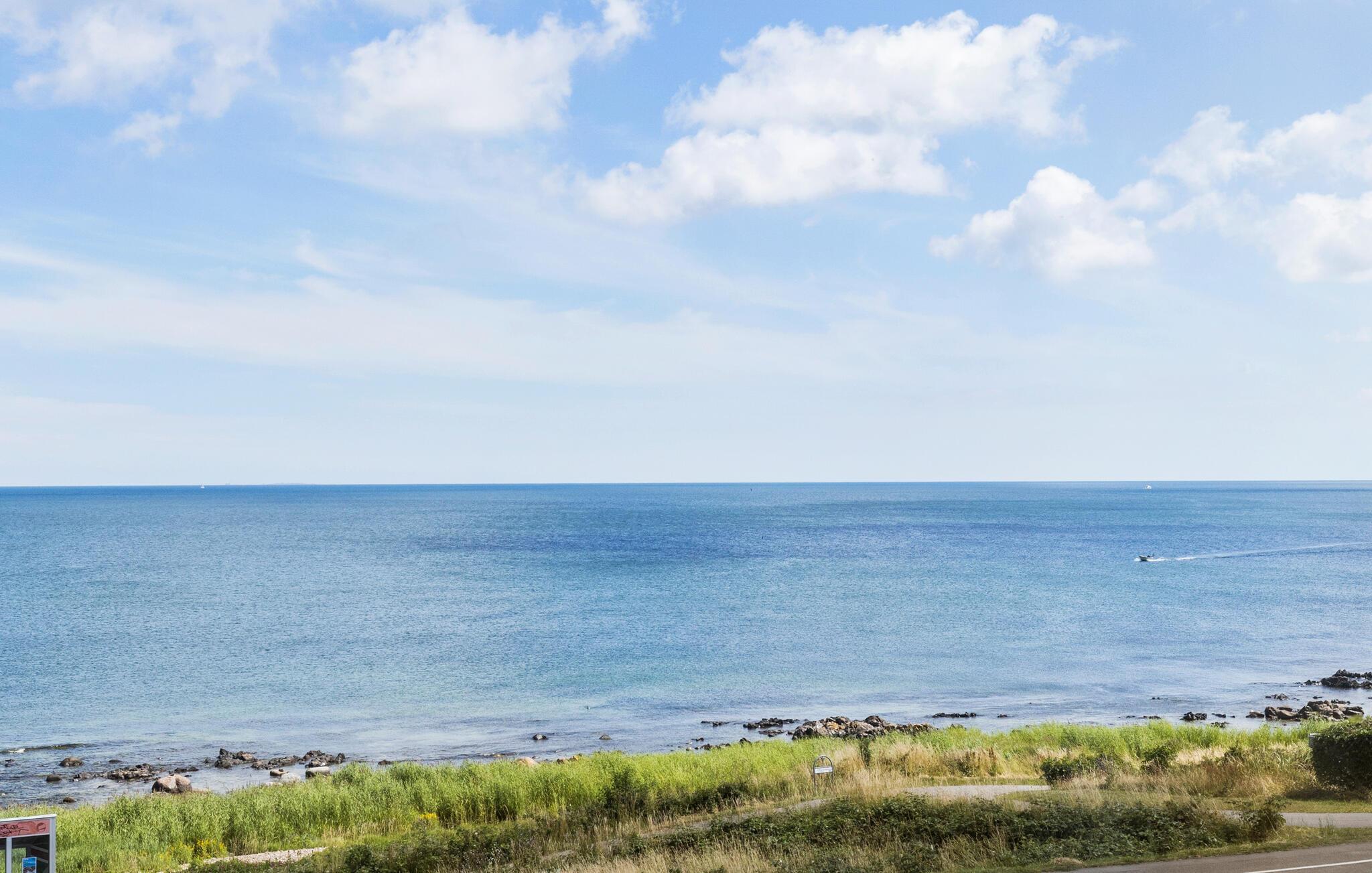 Moderne ferielejlighed med havudsigt, terrasse og kort afstand til strand i Sandkås på Bornholm.