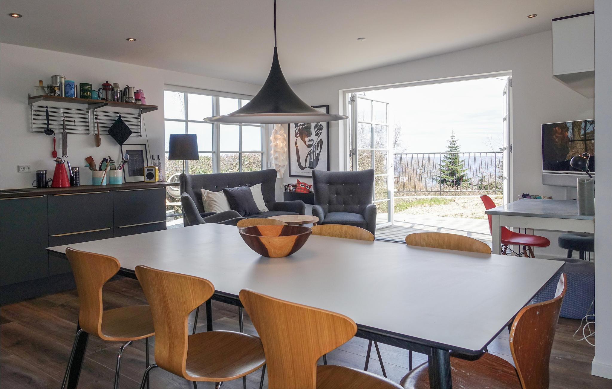 Sommerhuset er smagfuldt indrettet og fremstår moderne og flot. Indenfor kommer I til at tilbringe det meste af tiden i opholdsstuen ved siden af det åbne, veludstyrede køkken m. spiseplads. Her kan I flade ud i komfortable møbler, se fjernsyn og åbne dørene til den skønne terrasse, så der strømmer dejlig havluft ind. Der er badekar og vaskemaskine på badeværelset.