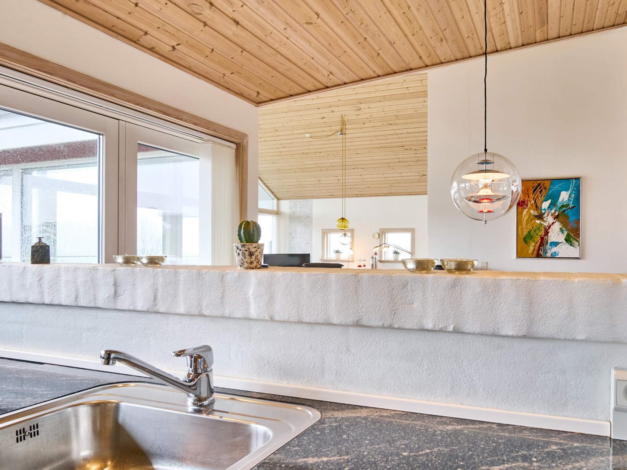 Køkken: Brændeovn, Chromecast, tv, el-komfur, køleskab m/frostboks, mikroovn, kaffemaskine, opvaskemask., vaskemask., tørretumbler