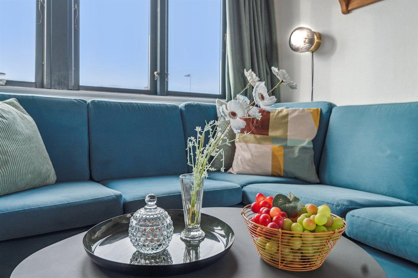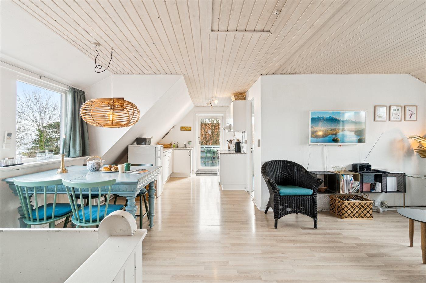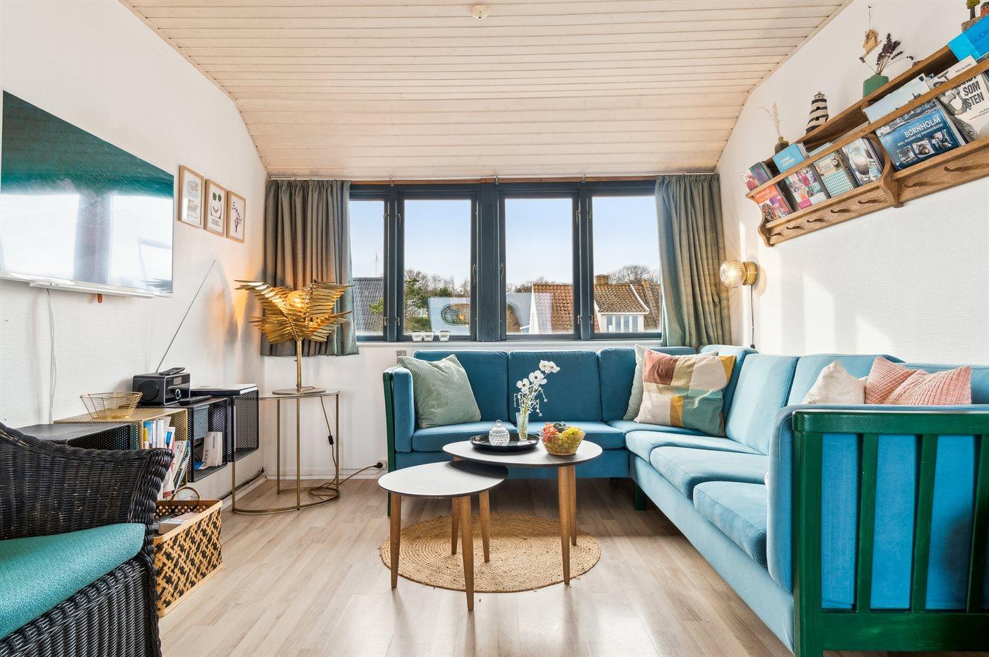 Den gode møblering og pæne indretning kendetegner lejligheden, der kan lejes sammen med husets anden lejlighed på 127 m2, hvis man er en stor familie, der har brug for megen plads, eller blot gode venner, der vil tilbringe en ferie under et og samme tag og opleve en ferie på Nordbornholm.