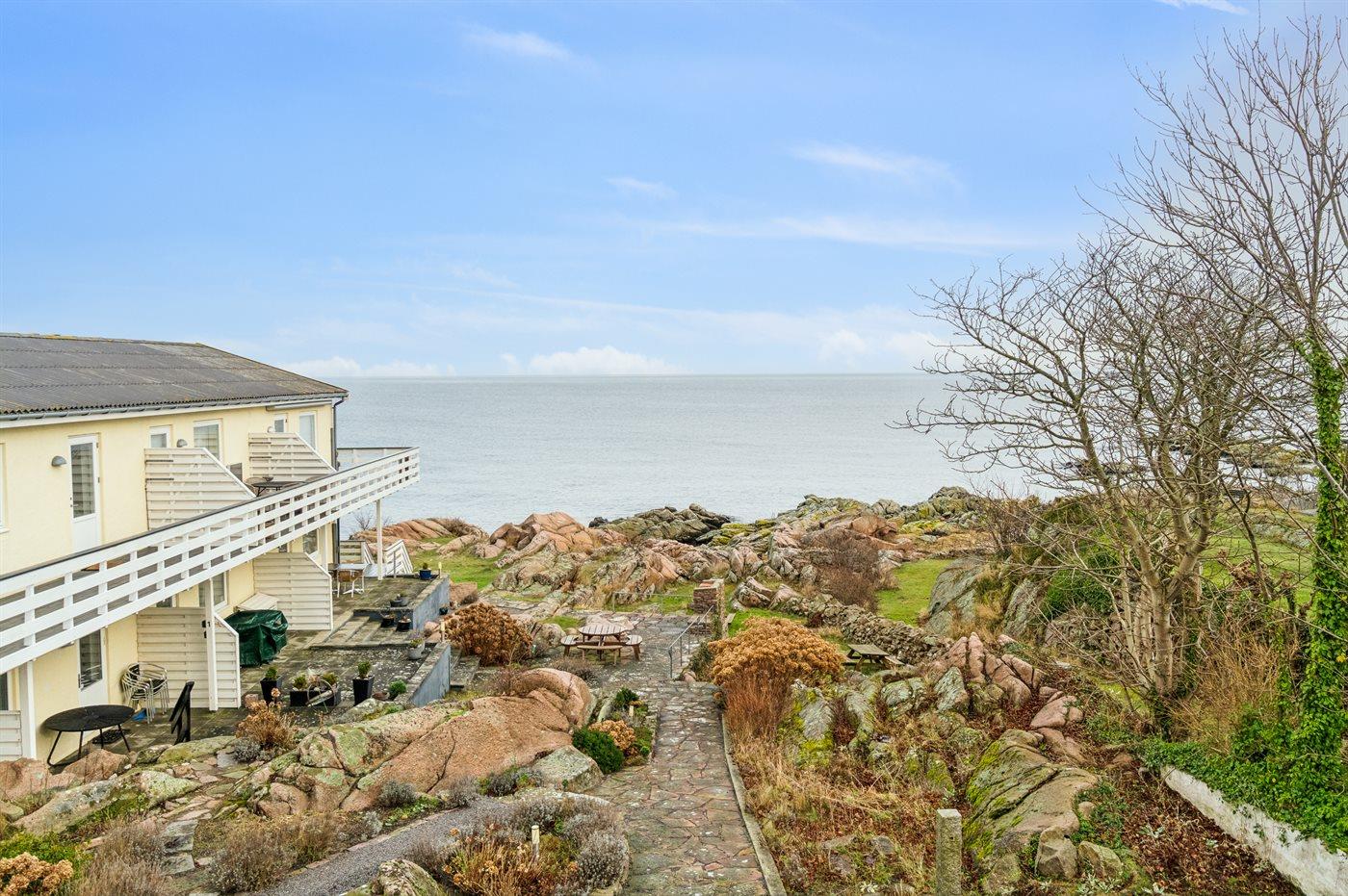 Denne ferielejlighed på 1. sal er indrettet i et større hus, som er beliggende i første række ud til klippekysten og havet - i ferieområdet Allinge/Sandvig.