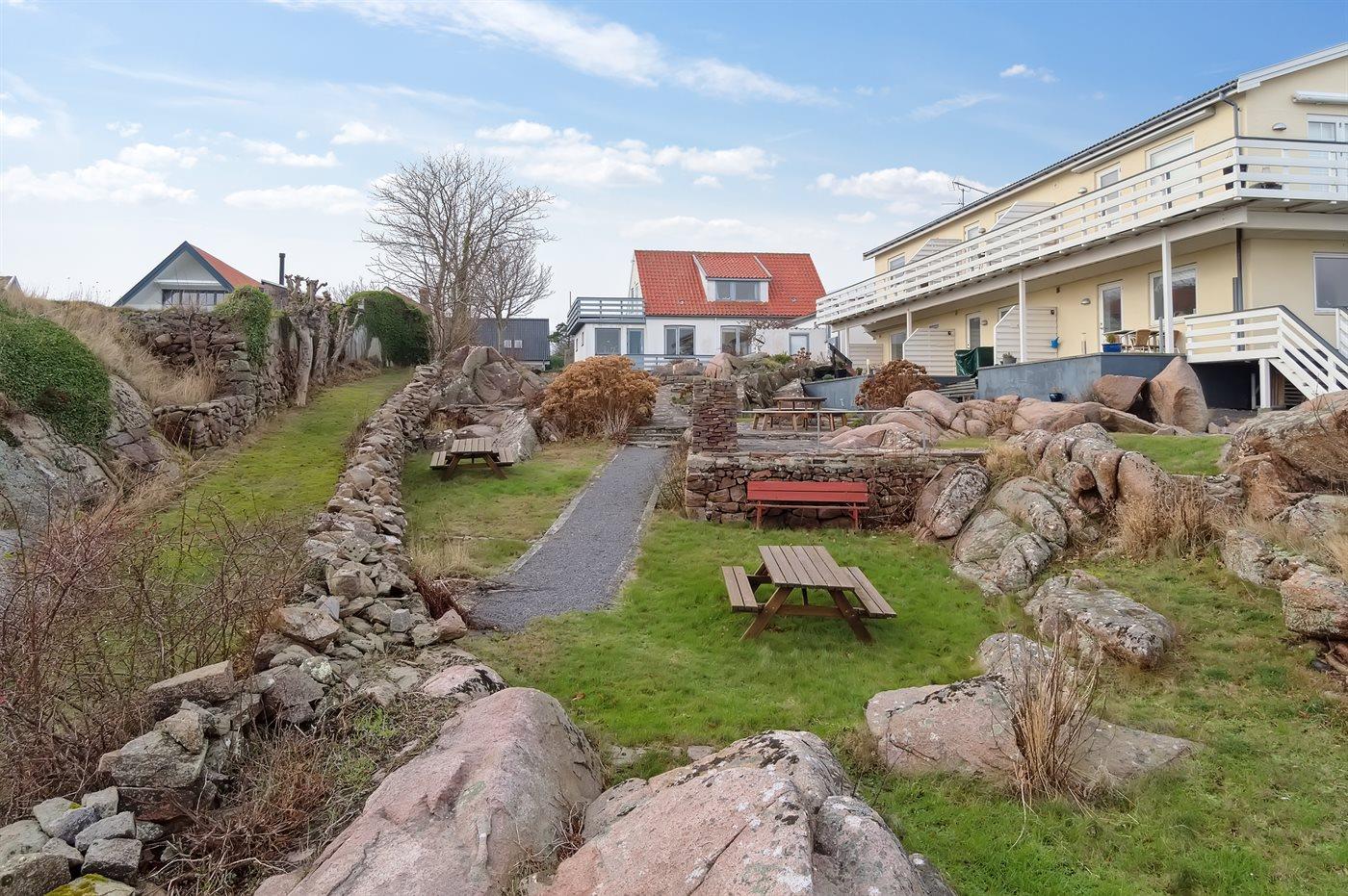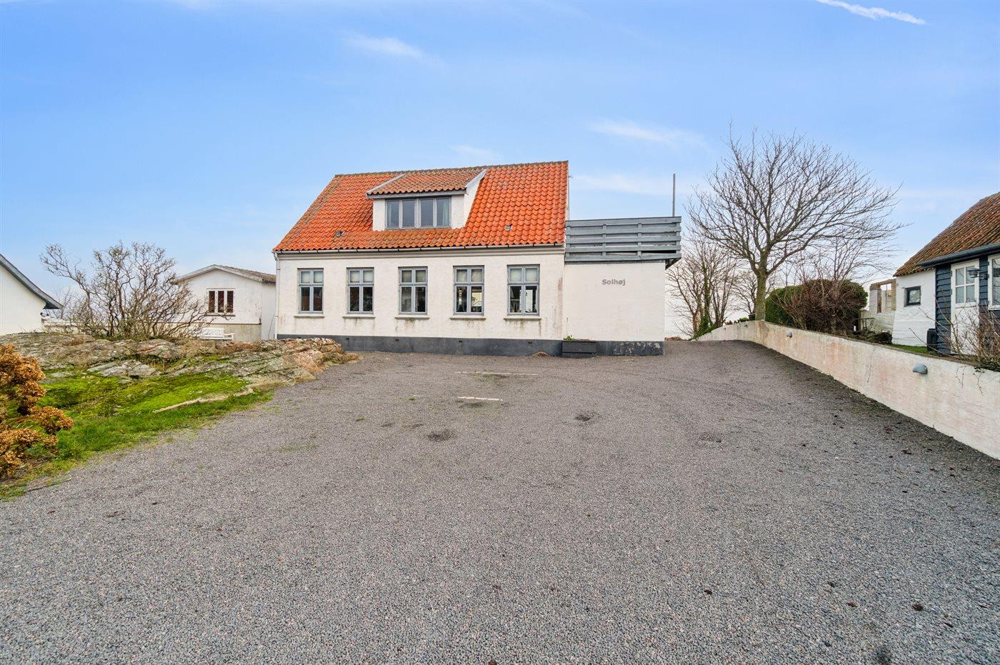 Den store grund, der præges af kystnærheden og klipperne i området er fælles med de øvrige lejere i det lille feriested Solhøj, der ligger nær ved Folkemødepladserne, hvor der i uge 24 vrimler med mennesker, men som ellers er et stille og roligt feriested. Her er der adgang til kyststier, Allinge Røgeri eller Nordbornholms Røgeri, konditoriet i Allinge og flere restauranter, der nok kan friste efter f.eks. en strabadserende tur hen over Hammerknuden.
