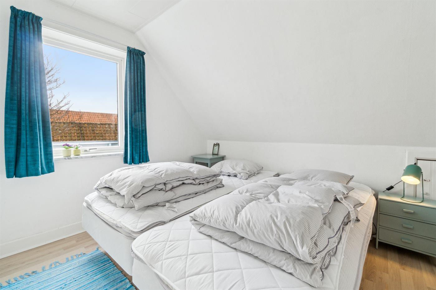 Der er i alt 3 soveværelser. Sovepladserne fordeler sig på: 2 sovepladser i dobbeltseng. 3 sovepladser i enkeltsenge.