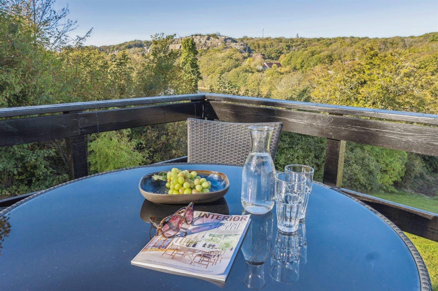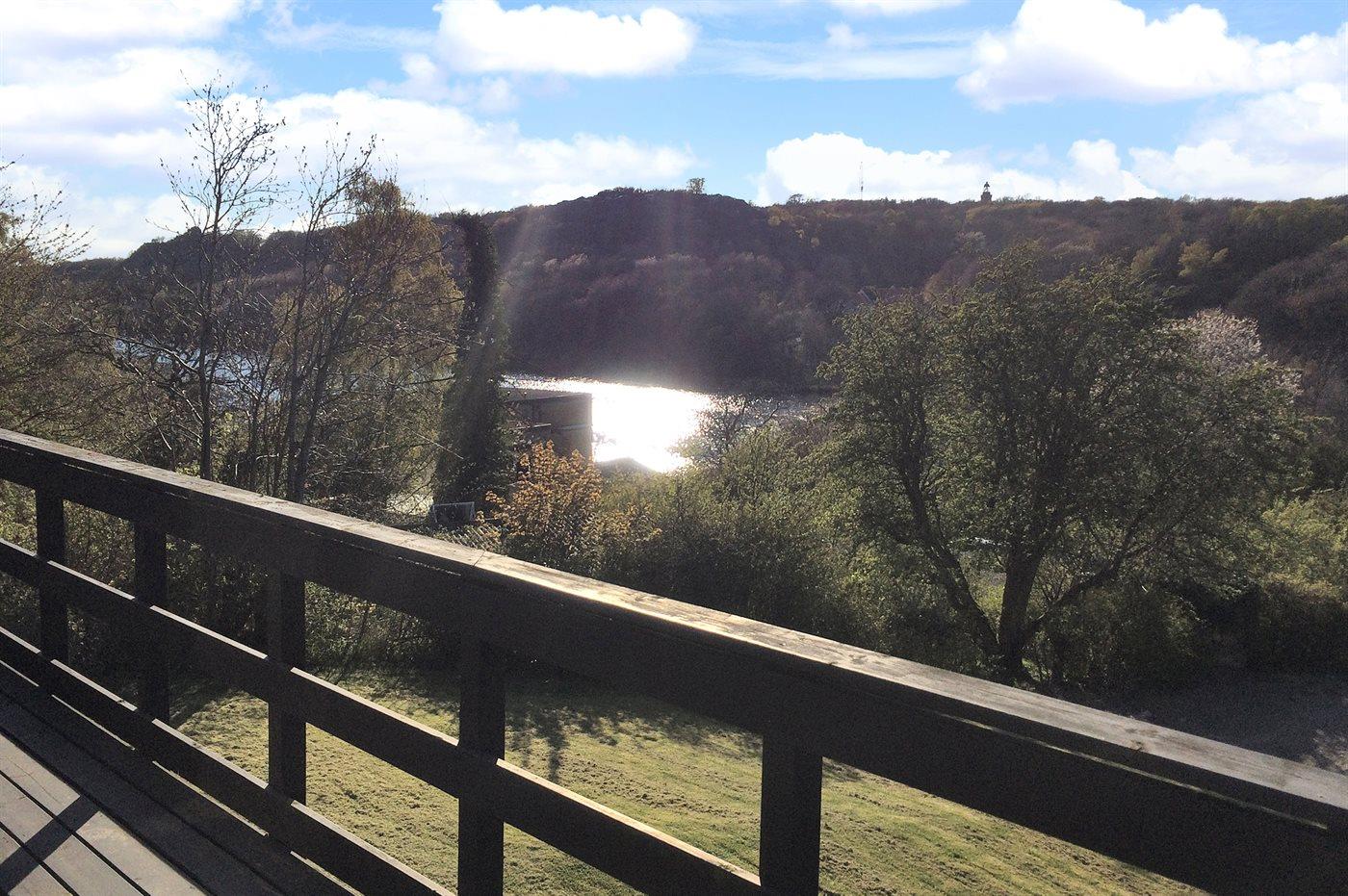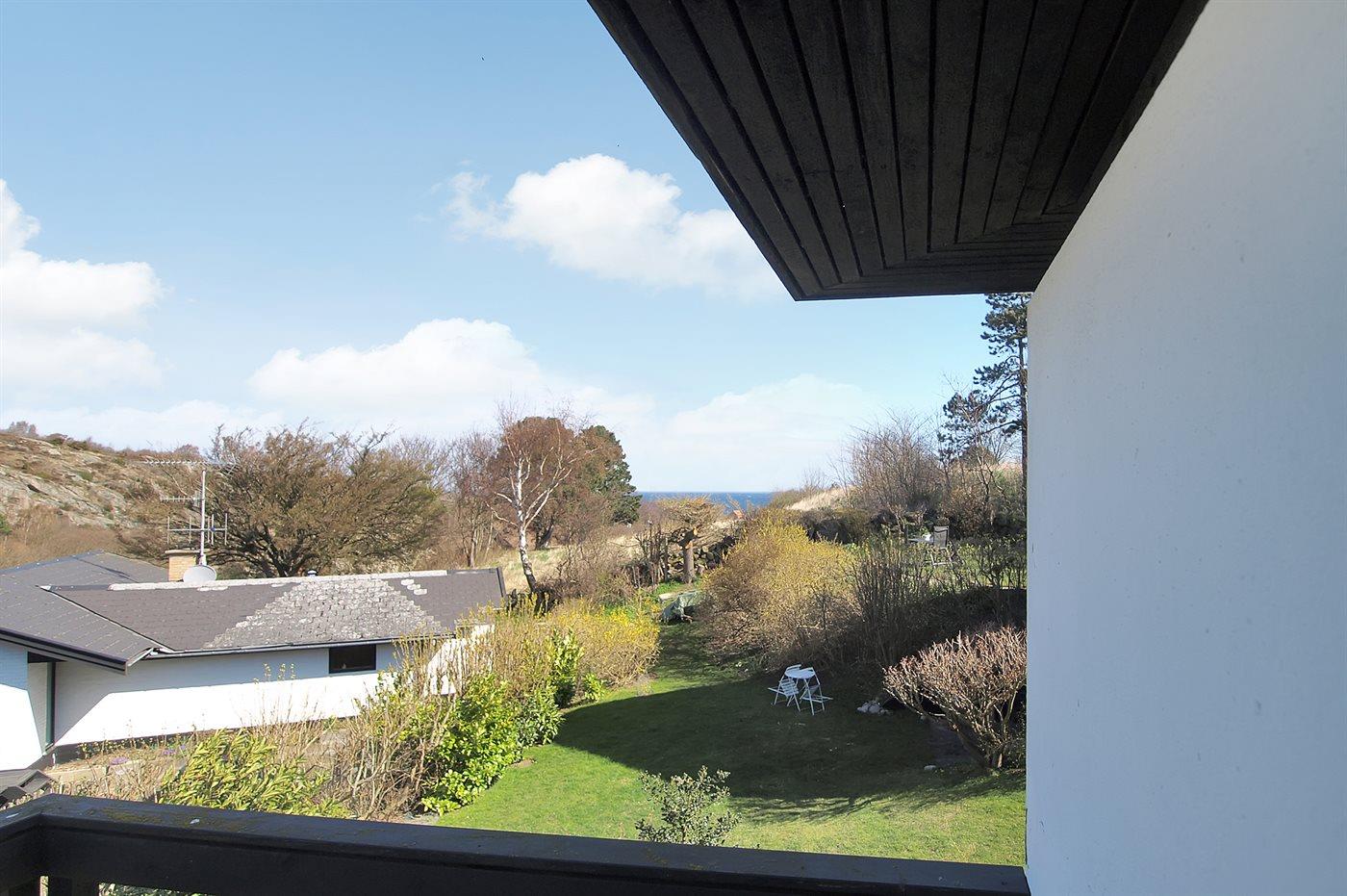 "Søjlehuset" er bygget i utraditionel stil, ligger på en kuperet naturgrund og har en dejlig udsigt over Hammersøen og et kik ud til Østersøen. Der er en fantastisk udsigt fra den store og hævede træterrasse med gode havemøbler.