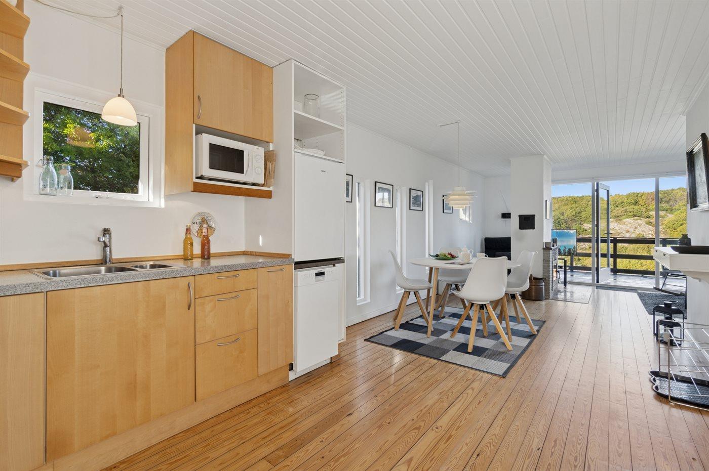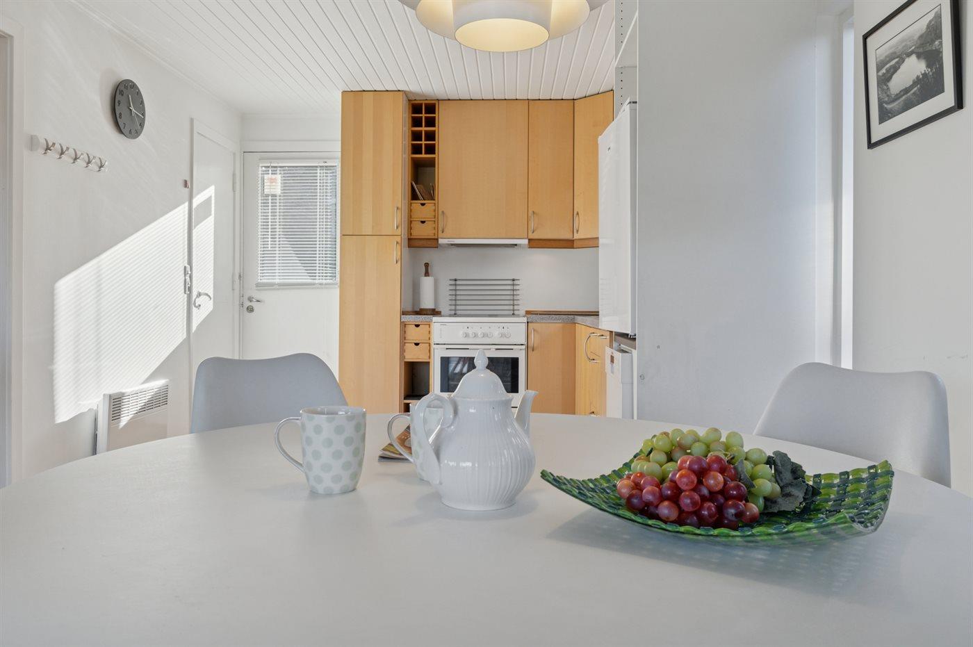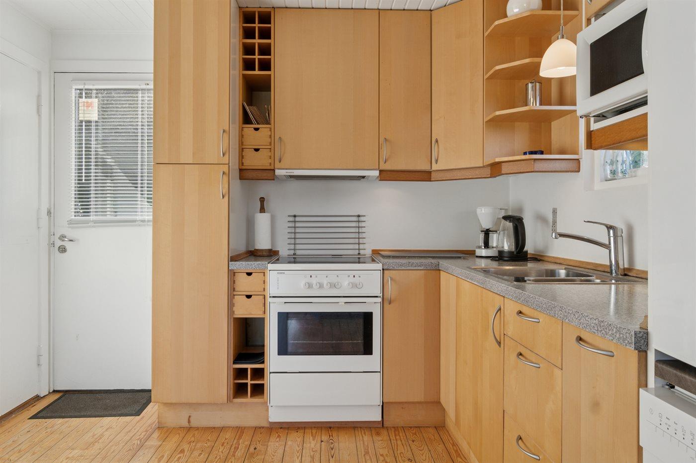 Køkkenet er udstyret med 1 køleskab. Der er 4 keramiske kogeplader, varmluftovn, mikrobølgeovn samt opvaskemaskine.