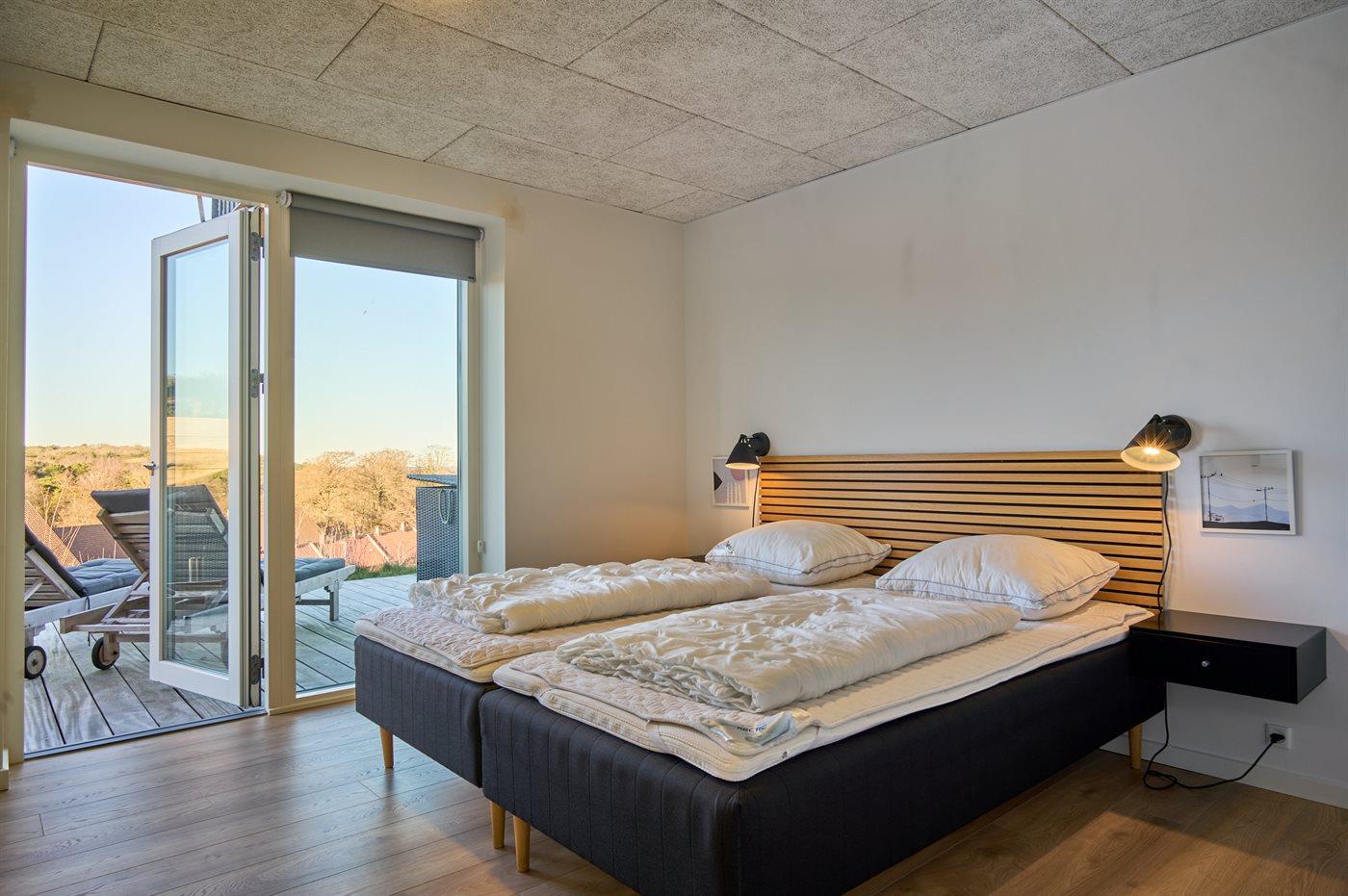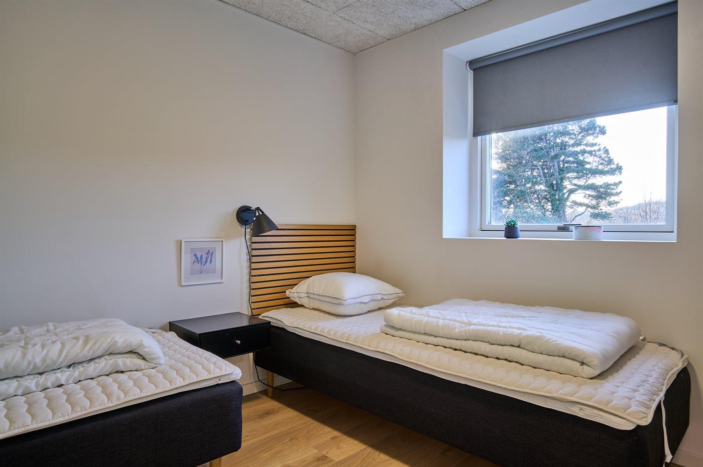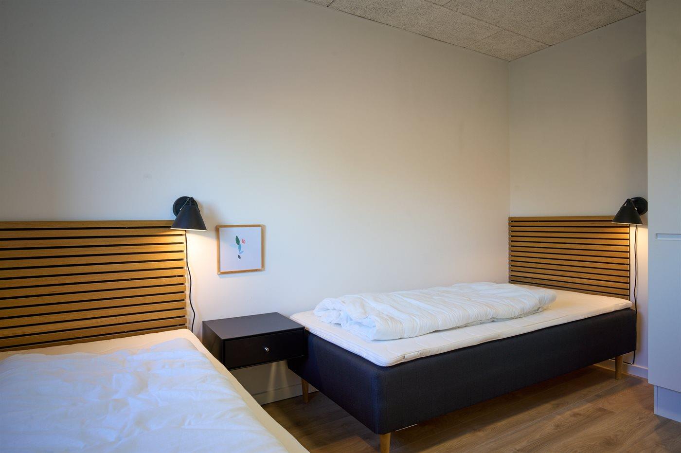Der er i alt 4 soveværelser. Sovepladserne fordeler sig på: 4 sovepladser i dobbeltsenge. 4 sovepladser i enkeltsenge.