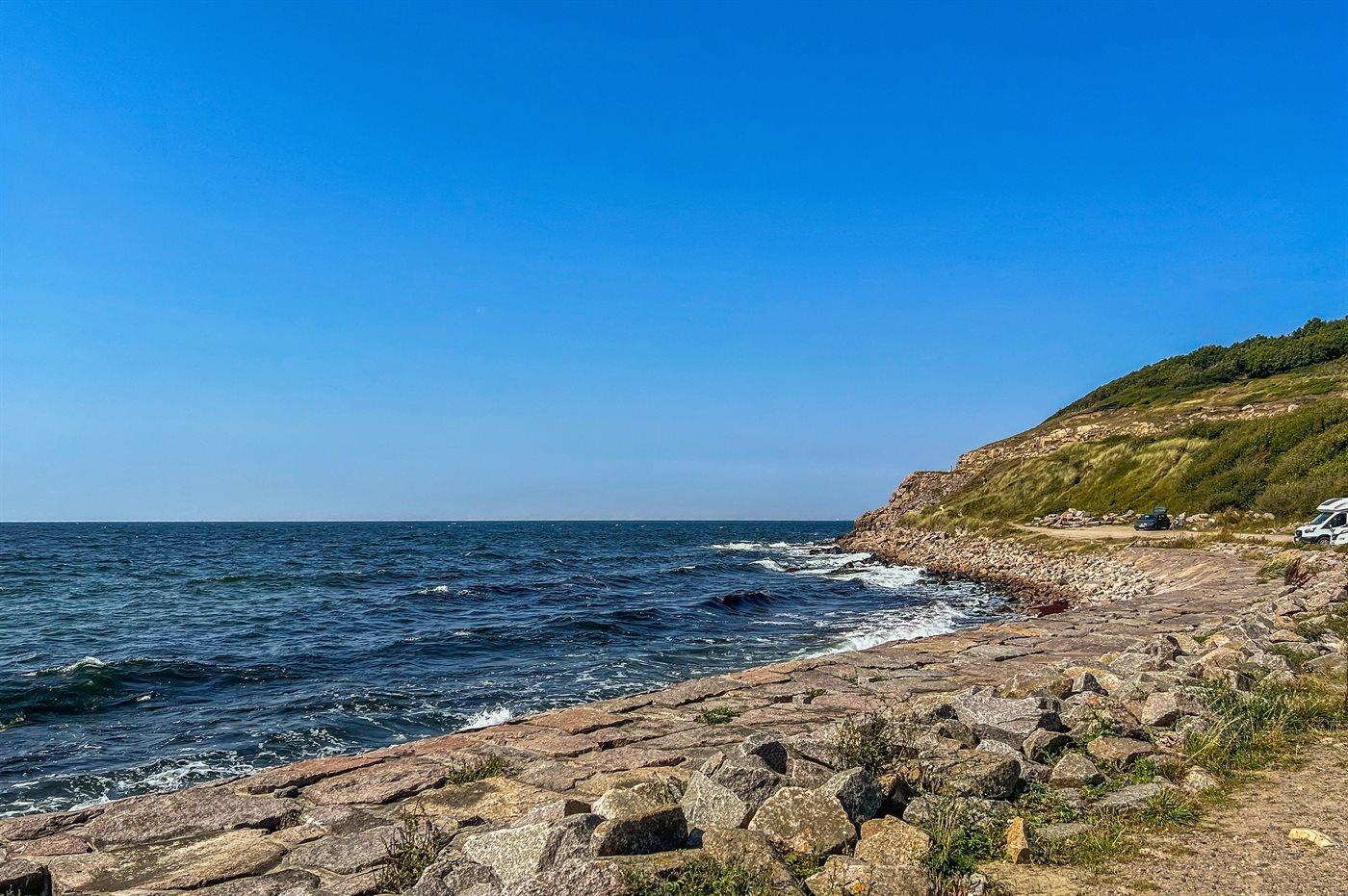 Denne smukke og helt unikke feriebolig, bygget i 2023, ligger helt fantastisk med panoramaudsigt over Hammerknuden og Sandvigbugten. Her får man noget af Bornholms smukkeste natur lige ind gennem de flotte glaspartier.