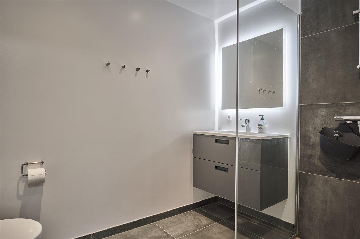 Der er 2 badeværelser med bruseniche og 2 toiletter. Der er gulvvarme på 2 badeværelser.