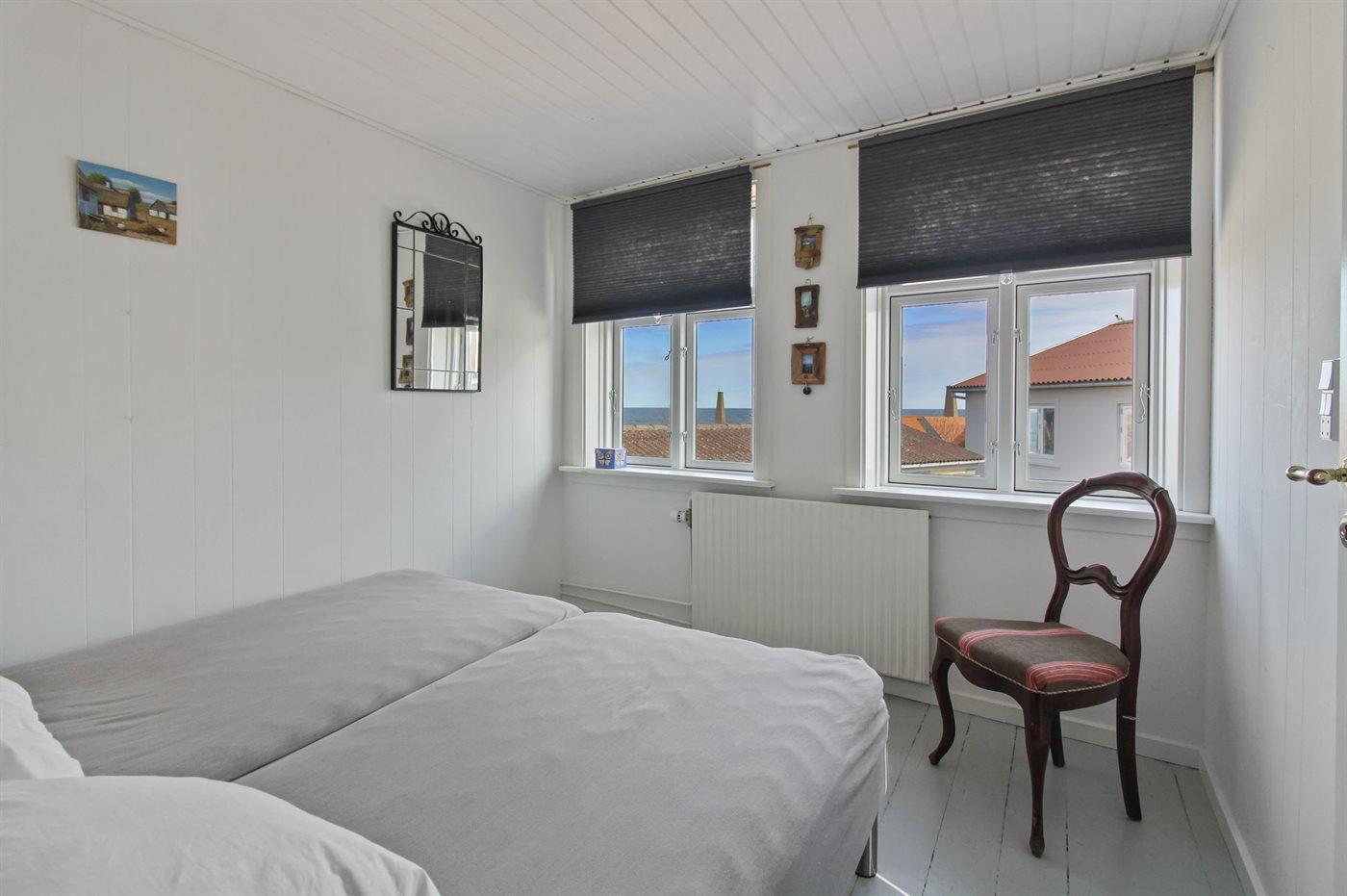 Der er i alt 2 soveværelser. Sovepladserne fordeler sig på: 2 sovepladser i dobbeltseng. 2 sovepladser i enkeltsenge. 2 sovepladser i sovesofa (dobbelt). 2 af disse sovepladser befinder sig i stuen.