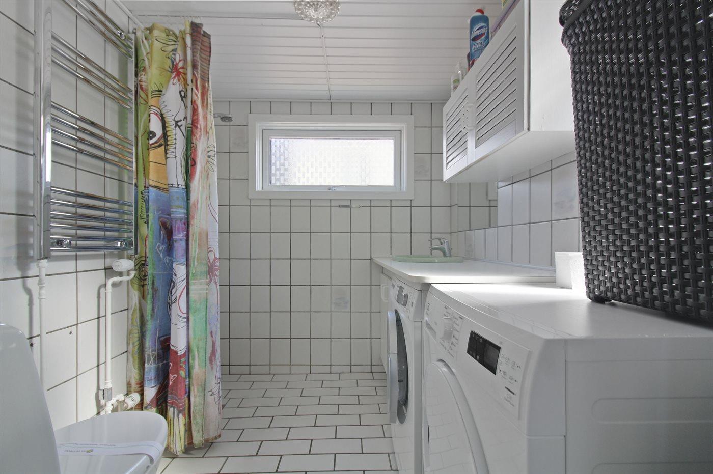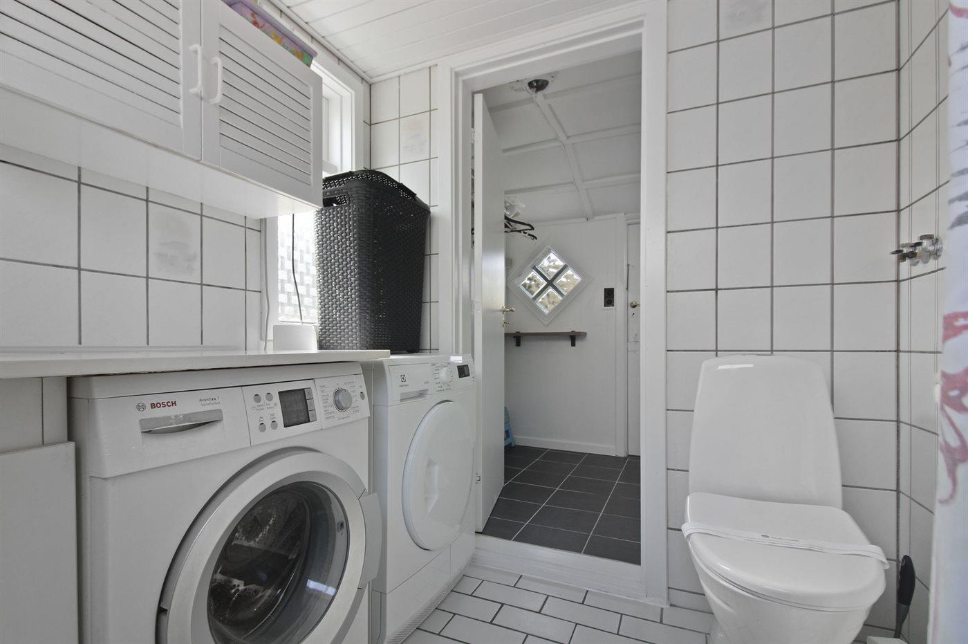 Der er 1 badeværelse med bruseniche og 2 toiletter, heraf 1 gæstetoilet. Der er gulvvarme på 1 badeværelse.