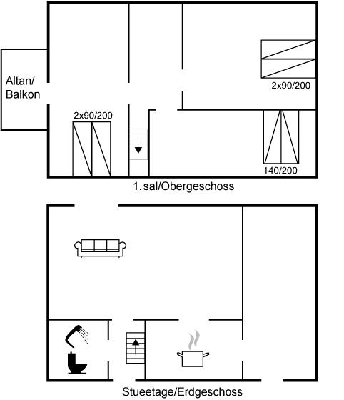 Huset er et murstenshus og det er indrettet i to plan, hvor soveværelserne befinder sig på 1. sal.