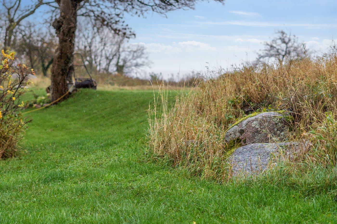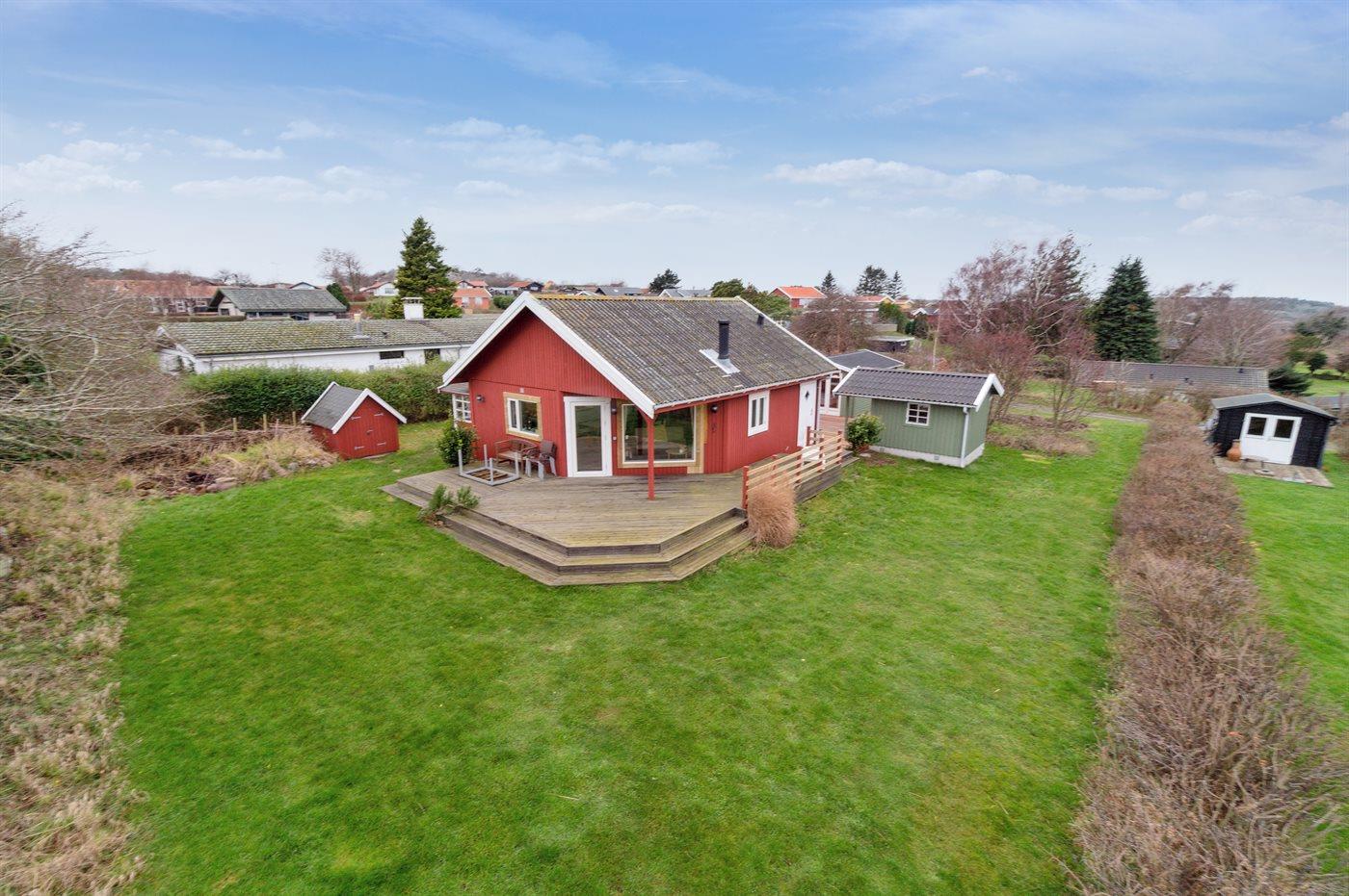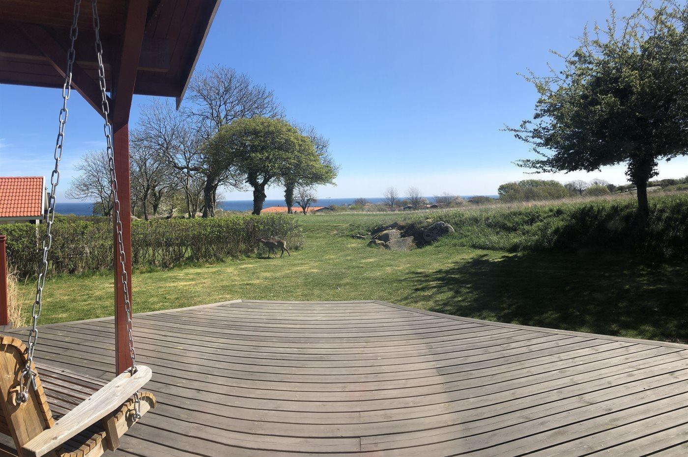 Sommerhuset er beliggende ud til fredet natur, hvor helleristningerne nærmest ligger i baghaven. Huset ligger højt over Sandvig i et populært sommerhusområde. Her fra toppen af bakken får du en fantastisk udsigt over Østersøen. Vænget er lukket og de rolige omgivelser er gode både for mennesker og det utroligt rige dyreliv.