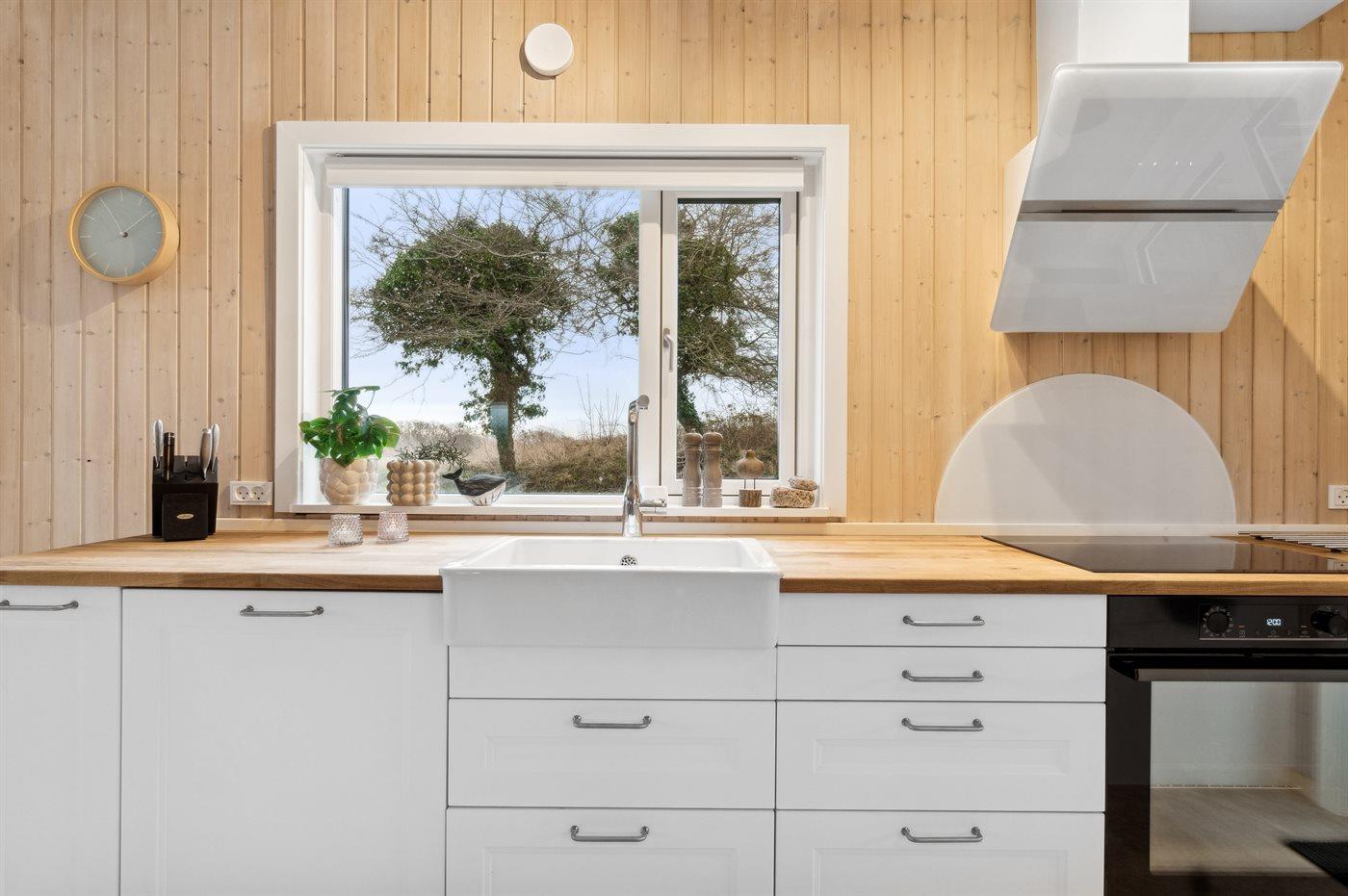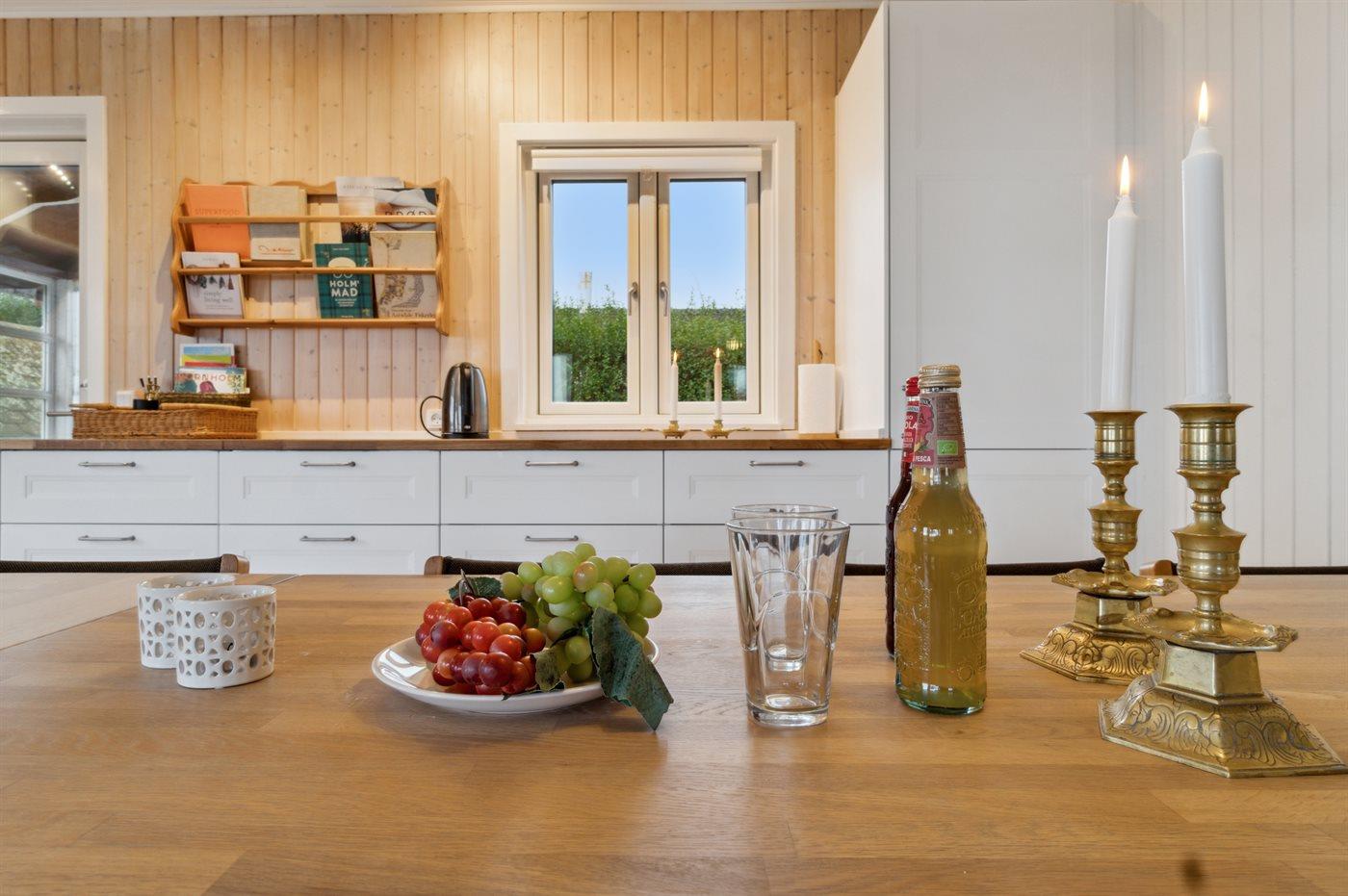Køkkenet er udstyret med 1 køleskab, fryser og opvaskemaskine. Der er induktionskogeplader og varmluftovn.