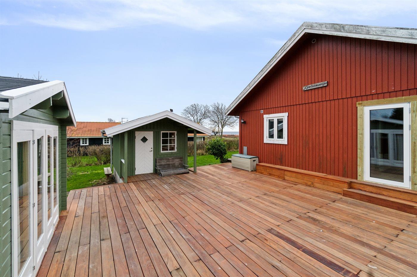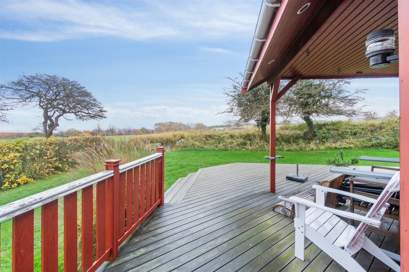 Huset er beliggende på en 805 m² stor naturgrund. Der er 300 m til havet. Nærmeste forretning er beliggende i en afstand af 1300 m. Der er en golfbane i en afstand af 9800 m. Til huset hører åbent terrasseareal. Desuden er der overdækket terrasse. Der ligger en legeplads i en afstand af 700 m. Grill og bålfad til rådighed. Parkering ved huset.
