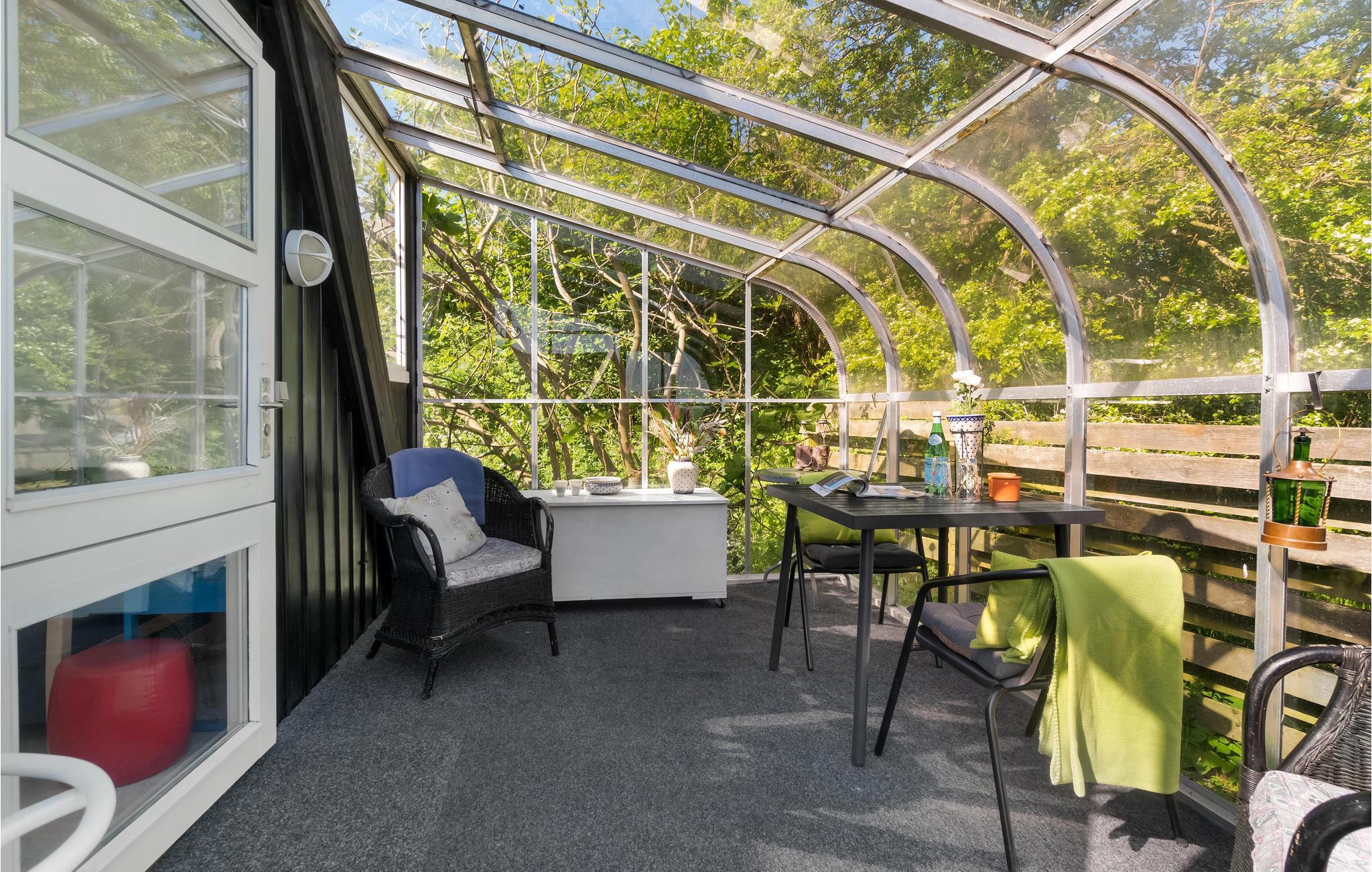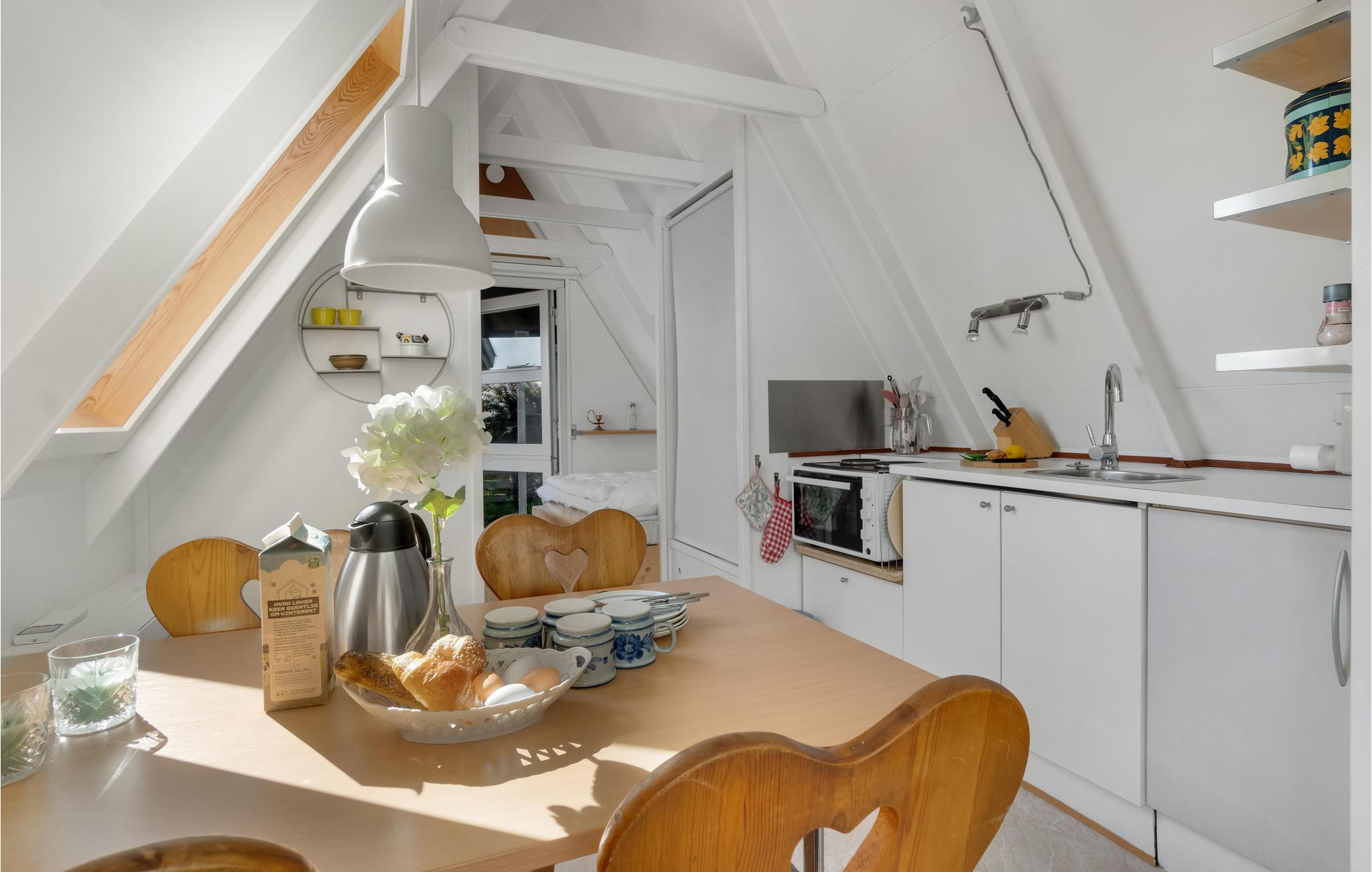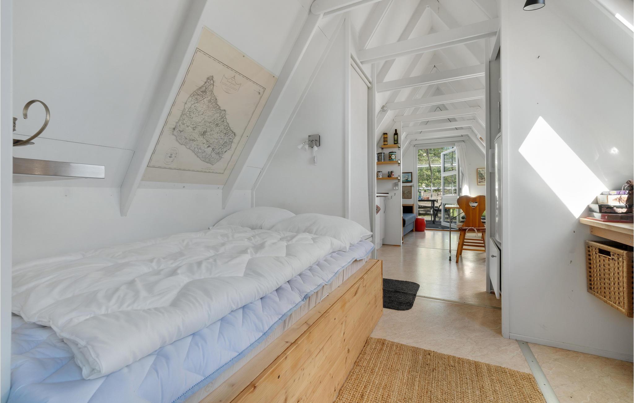 Det charmerende A-hus har alt, hvad I har brug for til en vellykket ø-ferie på relativt lidt plads. Huset egner sig både til den romantiske parferie og til den lille familie og er optimalt indrettet, så I mærker følelsen af at være hjemme. Tænd for morgenradioen og gør morgenmaden parat. Måske tager I en lille svingom i køkkenet? Planlæg dagens udflugt over morgenkaffen på den overdækkede terrasse. Nyd lange lune aftener på den åbne terrasse med god vin og mad fra kuglegrillen. Snup en frisk dukkert i havet, så tit I vil, før vandet er kun nogle få hundrede meter væk.