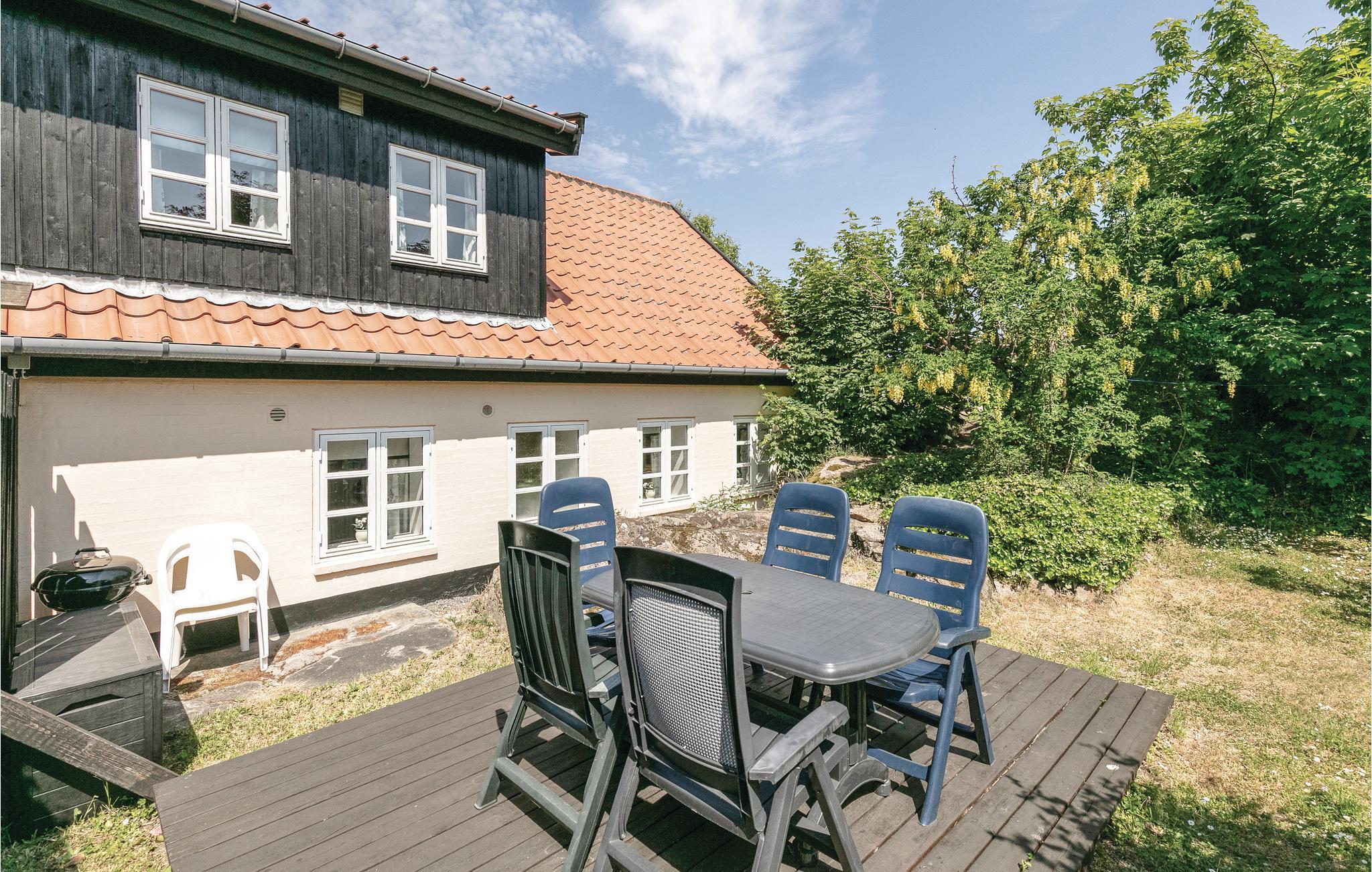 Flot renoveret ferielejlighed i den gule ejendom "Skagenhuset" beliggende nær flot klippekyst og med fælles udendørs swimmingpool (opvarmet ca. 10.juni - 5. sept.) samt fælles legeplads og boldbane, altsammen i et skønt og børnevenligt område. Lejligheden fremtræder lys og pænt indrettet med komfortable møbler, et godt åbent køkken med opvaskemaskine og et nydeligt lyst badeværelse. Her er naturligvis gratis trådløst internet til rådighed. Dejlig terrasse med havemøbler og grill i et hyggeligt område.Godt nærmiljø med klippepartier og flotte fællesarealer i område med flere huse og lejligheder kaldet "Madseløkke", ligesom I også har adgang til fælles vaskeri (mod betaling). Fra lejligheden, der er nabo til lejlighederne I56152 og I56153, er der ikke langt til den smukke klippekyst, cykelsti til Sandvig og Allinge og nær til indkøbsmuligheder og restauranter samt badestrande i såvel Sandvig som Allinge. Lejligheden ligger i stueplan og er røgfri.
