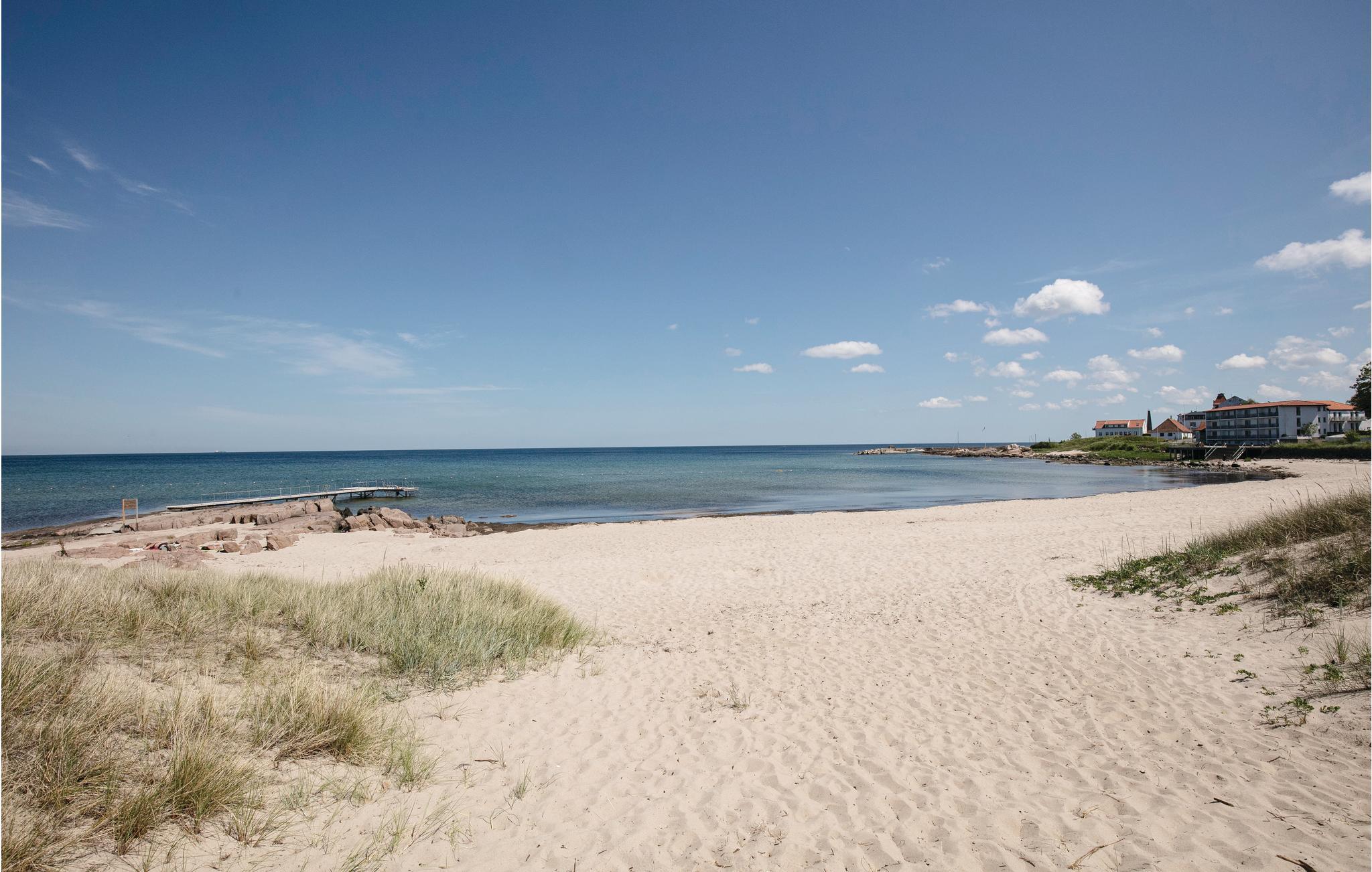 Flot renoveret ferielejlighed i den gule ejendom "Skagenhuset" beliggende nær flot klippekyst og med fælles udendørs swimmingpool (opvarmet ca. 10.juni - 5. sept.) samt fælles legeplads og boldbane, altsammen i et skønt og børnevenligt område. Lejligheden ligger på 1. sal med udgang til en skøn terrasse med havkig, havemøbler og grill. Nydelig indretning med komfortable møbler, et pænt åbent køkken med opvaskemaskine og et nydeligt lyst badeværelse. Her er naturligvis gratis trådløst internet til rådighed. Dejlig terrasse med havemøbler og grill i et hyggeligt område.Godt nærmiljø med klippepartier og flotte fællesarealer i område med flere huse og lejligheder kaldet "Madseløkke", ligesom I også har adgang til fælles vaskeri (mod betaling). Fra lejligheden, der er nabo til lejlighederne I56151 og I56152, er der ikke langt til den smukke klippekyst, cykelsti til Sandvig og Allinge og nær til indkøbsmuligheder og restauranter samt badestrande i såvel Sandvig som Allinge. Lejligheden ligger ud til vej og er røgfri.