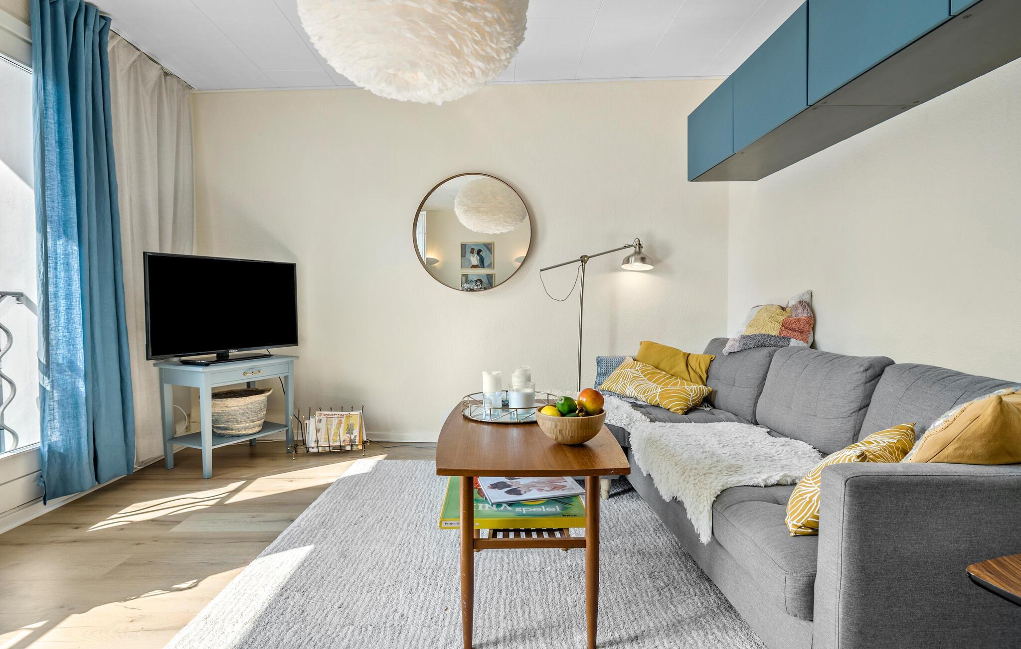 Glæd jer til denne moderne og hyggelige ferielejlighed, der dygtigt kombinerer livet indendørs og udendørs. Nyd atmosfæren og charmen ved lejligheden, når I træder ind i de maritime og bløde farver. Føl jer hjemme sammen med jeres kære og nyd den indbydende indretning. Feriedagene vil flyve afsted, og I vil blive indbudt til at opleve solen og udsigten fra lejlighedens fællesterrasse, hvor I også kan se ned til havet. Begynd jeres dage med kaffe og morgenmad i solen lige foran hoveddøren og læg planer for den kommende dag.