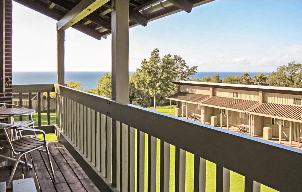 Indbydende ferielejlighed med to etager og havudsigt i naturskønne omgivelser nær nogle af Bornholms store attraktioner.