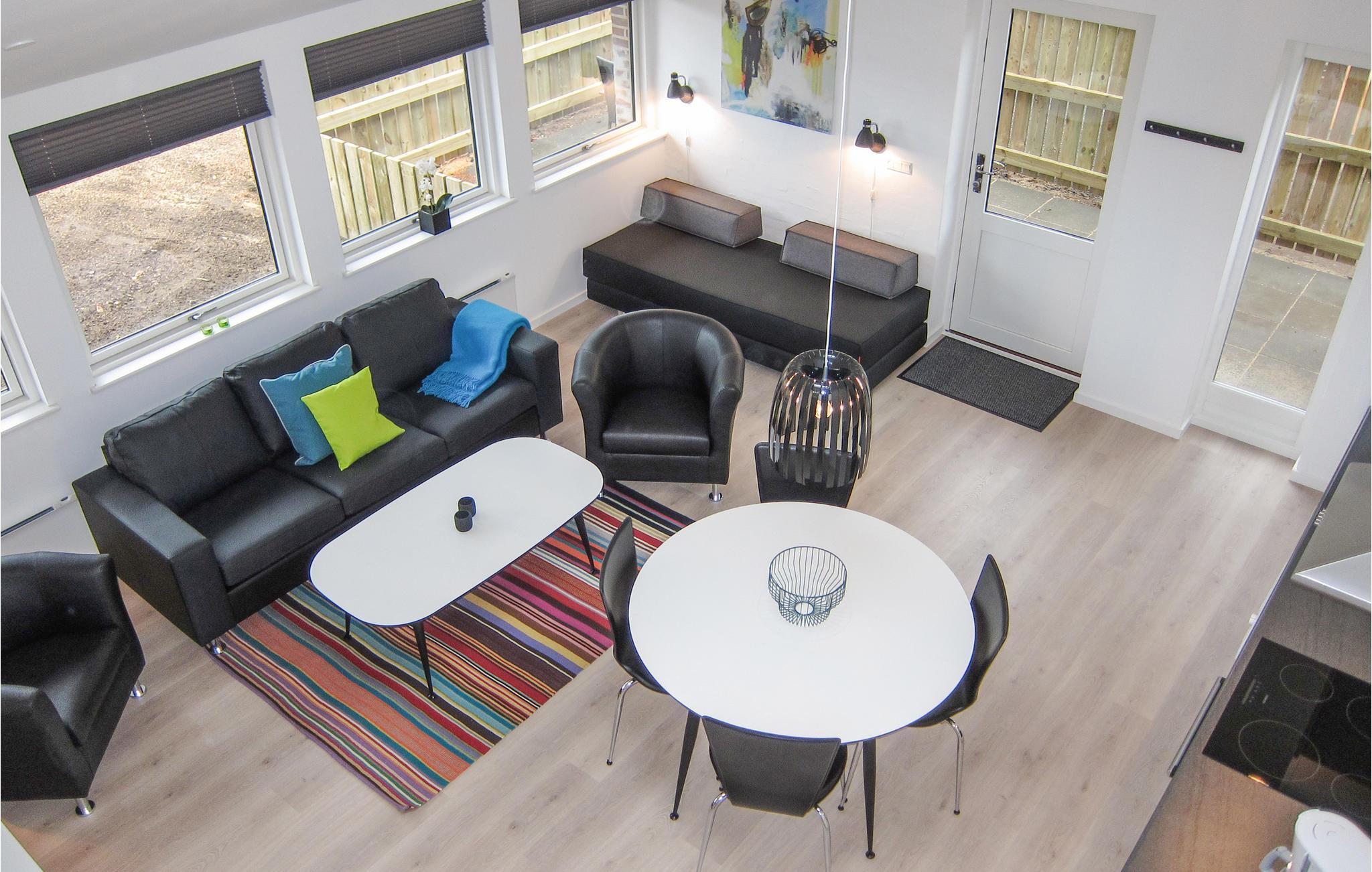 Lejlighedens hjerte er den kombinerede køkken og opholdsstue, hvor nogle af jer kan slappe af i komfortable møbler foran fjernsynet, mens andre laver mad. Fra stuen er der udgang til en terrasse med havemøbler og grill, hvor I kan sidde og slappe dejligt af, nyde den friske havluft og tilberede lækre grillretter. Der er behagelig gulvvarme på badeværelset. Lejligheden har et soveværelse, en hems med dobbeltmadrasser og en sovesofa i stuen.