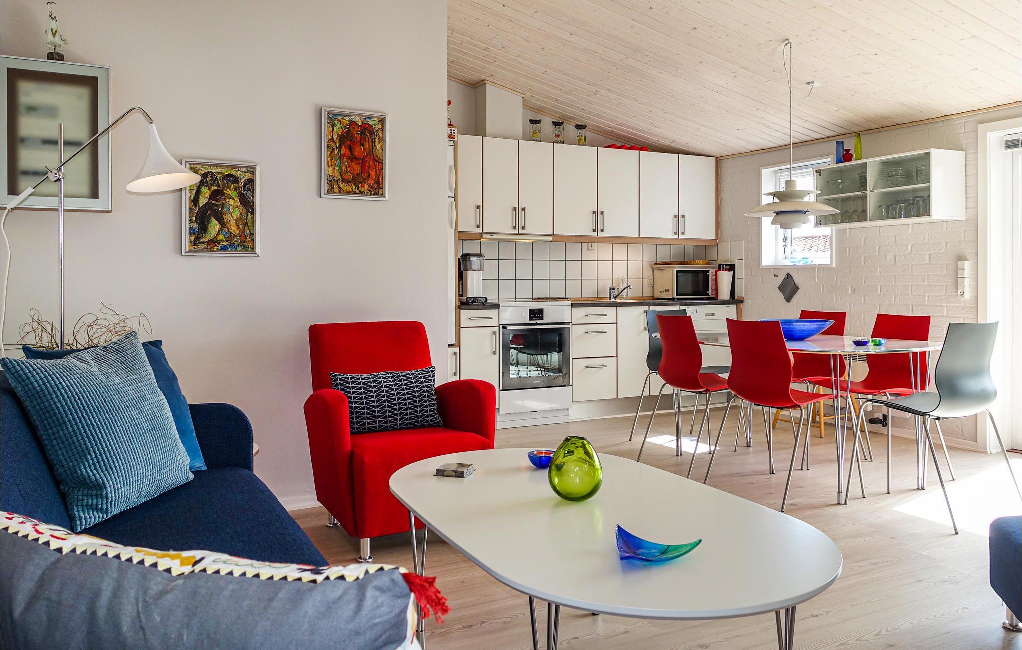 Her er der en rigtig fin lejlighed til børnefamilien eller to par, der holder ferie sammen, da der er to soveværelser. I kan se frem til en rummelig og indbydende opholdsstue, som har en lys og åben indretning med flotte farveindslag. I det åbne køkke venter der gode faciliteter, så I har alt, hvad I skal bruge til at sammensætte en masse dejlige ferieretter.