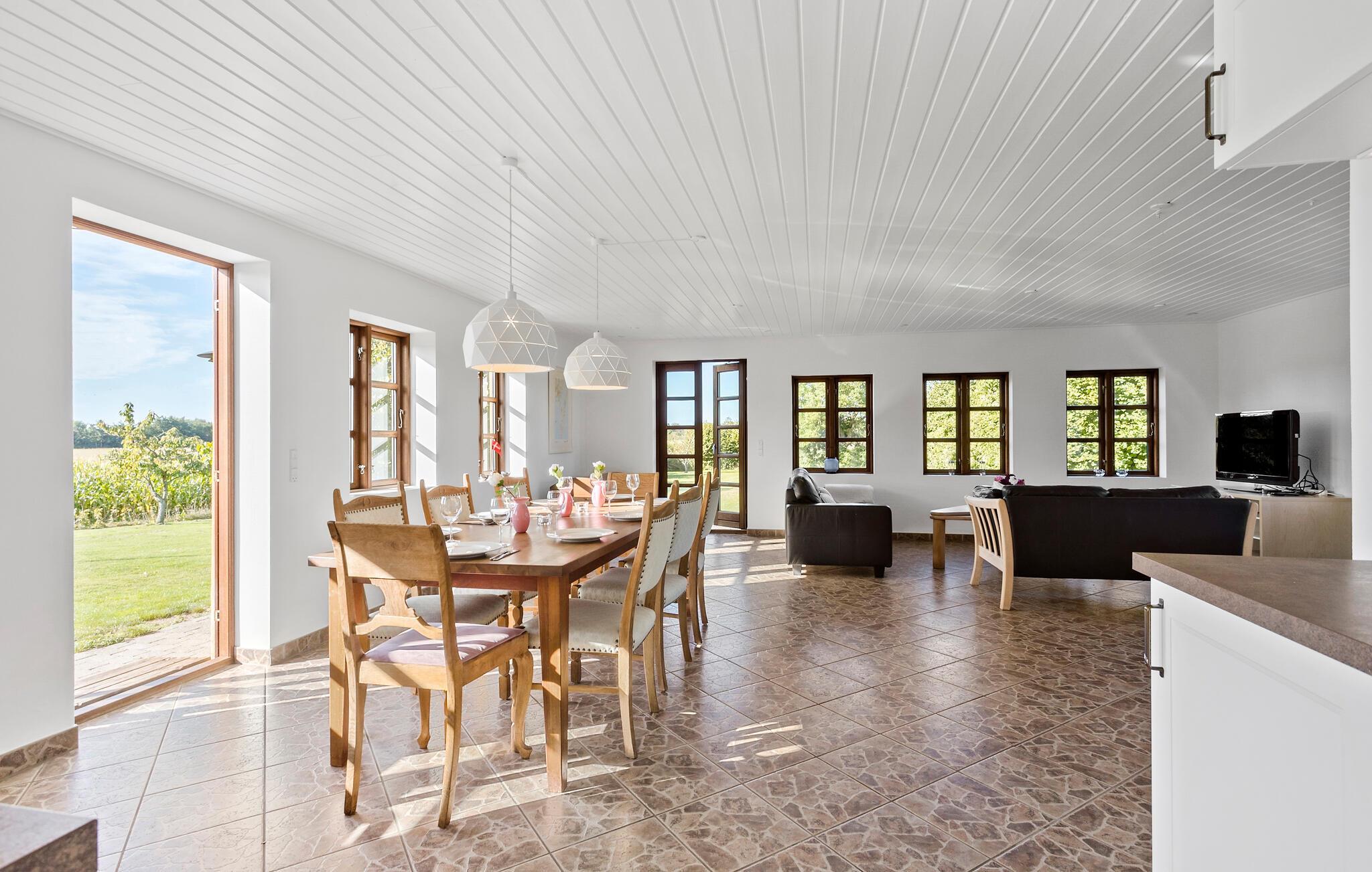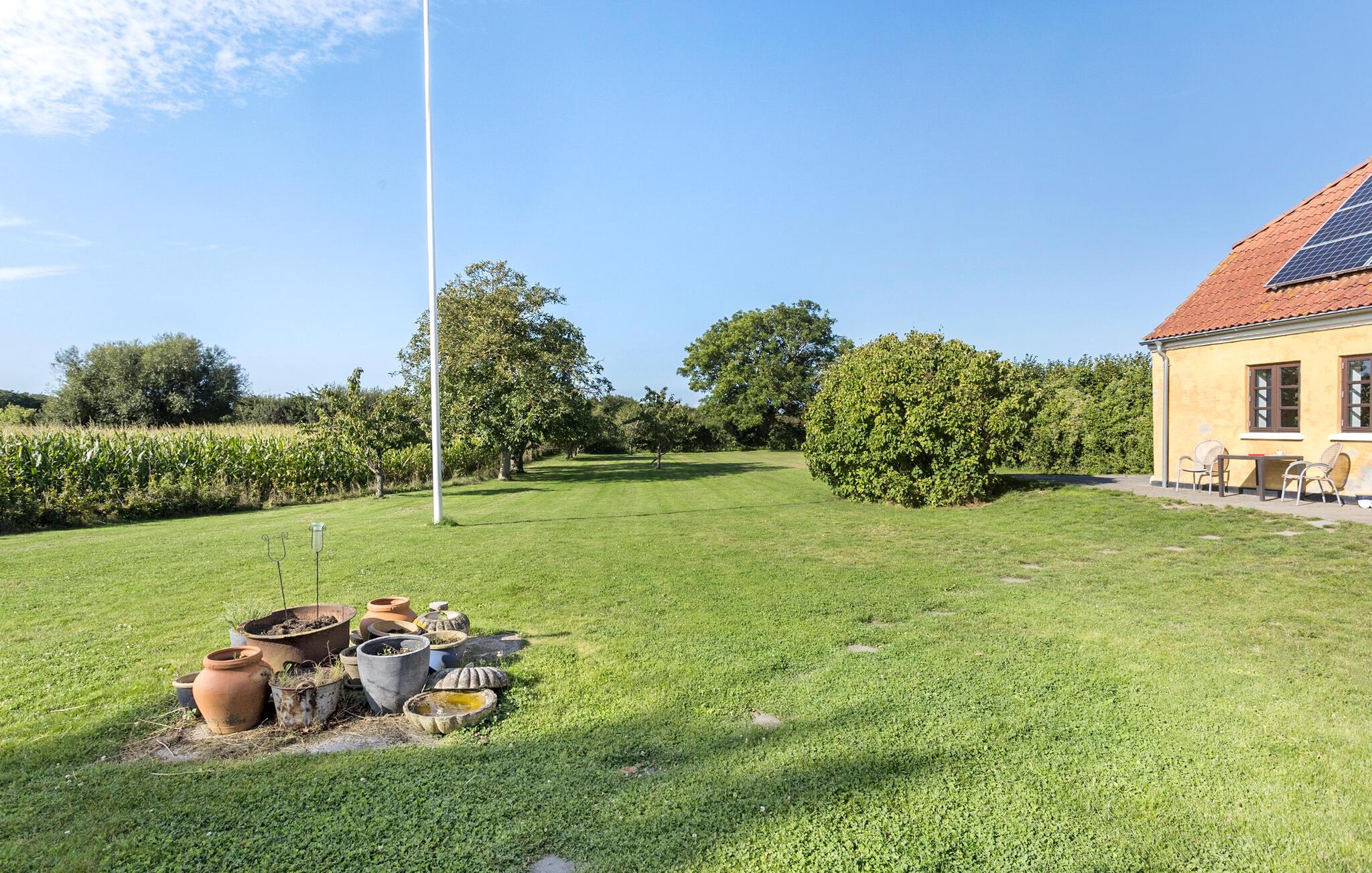 Familievenlig landejendom i Sønder Longelse med spabad, terrasse og udsigt over marker.