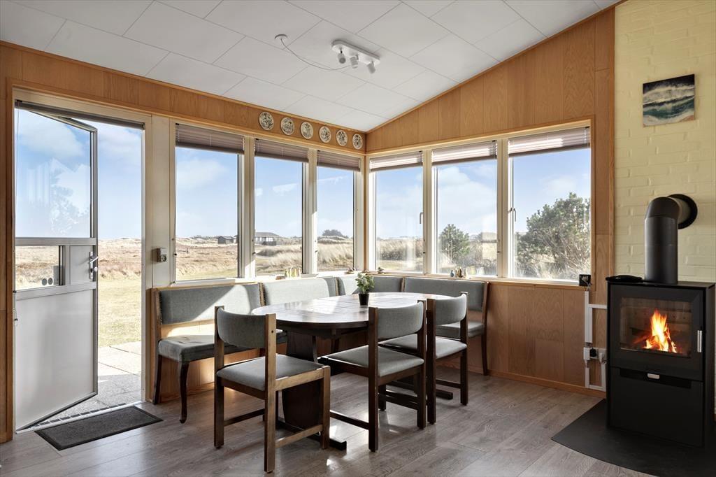 At I er omgivet af natur, glemmer I ikke, for de store vinduer vendt mod tre verdenshjørner giver en pragtfuld udsigt til omgivelserne med blandt andet kig til Ringkøbing Fjord. Fra køkkenet, sofagruppen og spisebordet kan I følge med i naturens gang og områdets rige dyreliv, der blandt andet inkluderer fugle, harer og rådyr. Feriehusets tre soveværelser har plads til fem overnattende gæster, så her er der masser af plads til, at hele familien kan få en uforglemmelig ferie sammen.