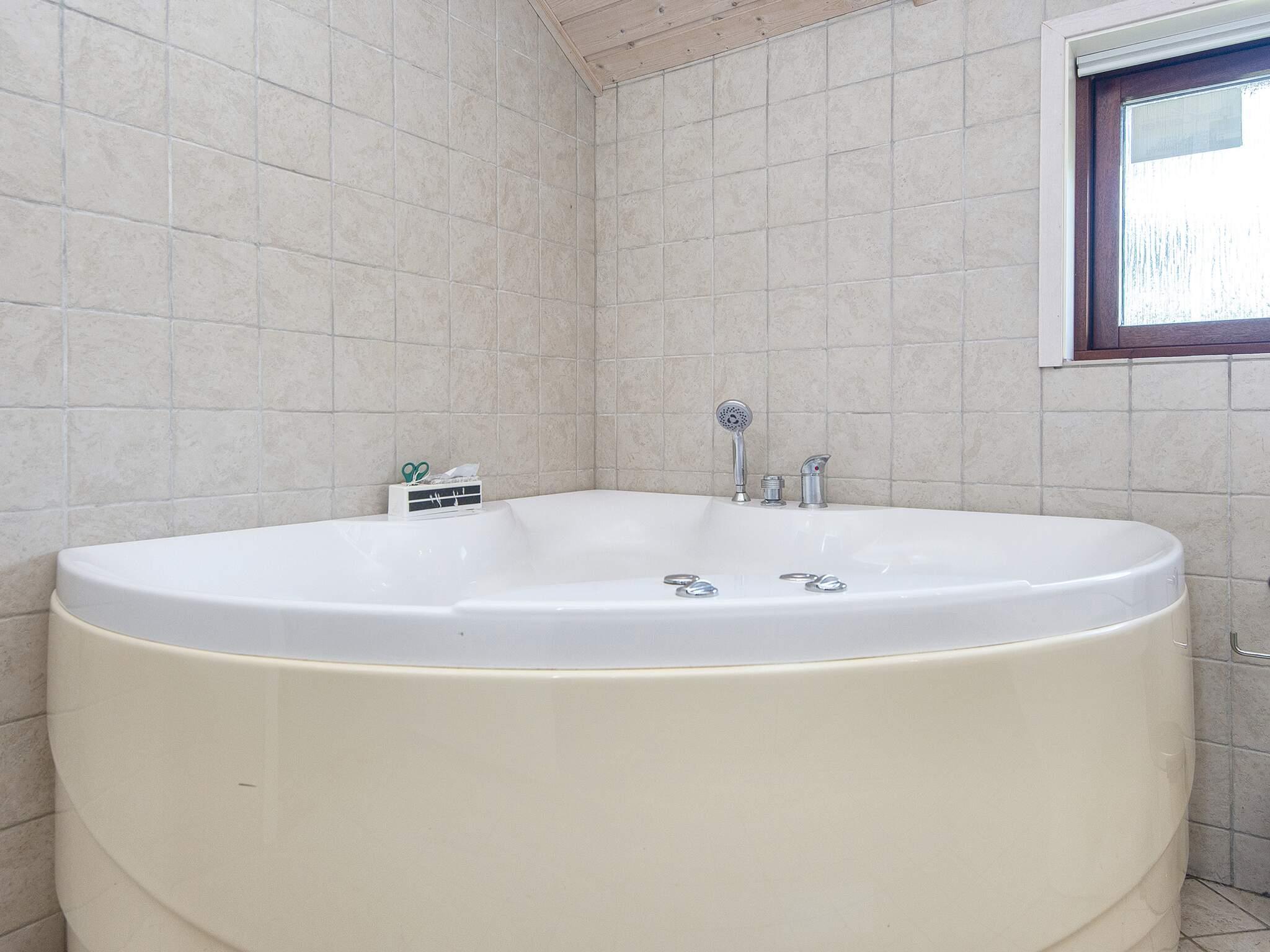 Sommerhus med 3 værelser, gæstetoilet og badeværelse med sauna og spabad, hvor I kan nyde tilværelsen med afslappende massage. Huset er beliggende på en 900 m² stor naturgrund med træer og græsplæne, til de små er der gynge og sandkasse. Huset er udstyret med fiskerenseplads og ekstra fryser.