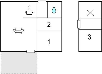 Opholdsstue/køkken - 1 Soveplads. (Sofa, madras eller lignende).