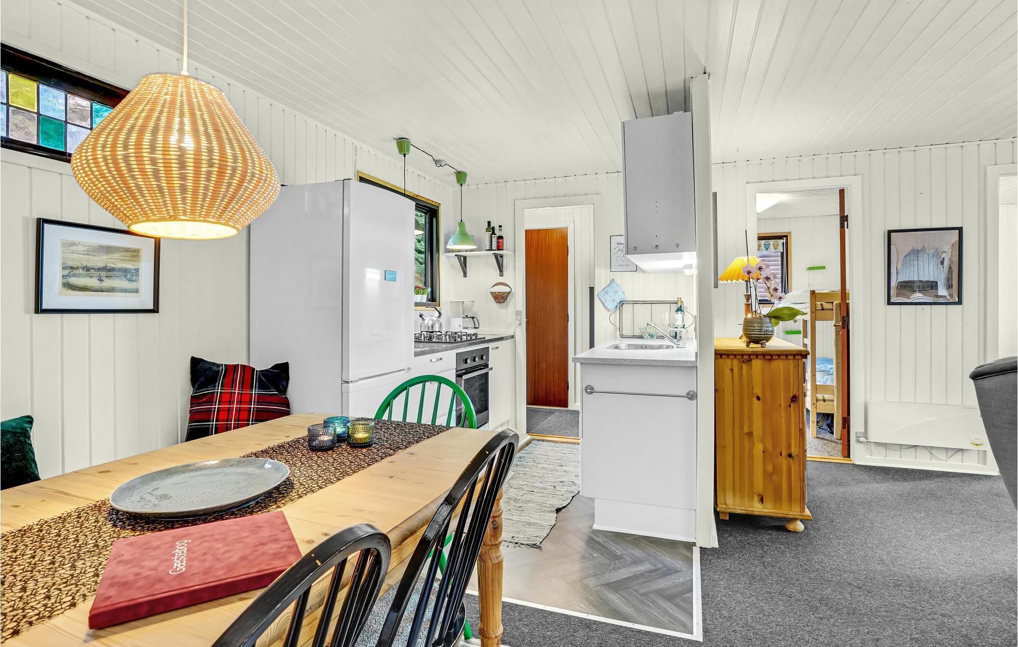 Velkommen i det grønne ud til skov og natur, hvor I finder dette hyggelige lille hus, som giver jer de perfekte rammer til en rolig familieferie. Boligen er varmt og charmerende indrettet med gode faciliteter, der gør jeres ophold behageligt. Fyld feriedagene med afslappende aktiviteter i huset mellem dagenes udflugter. Der er gode forhold til alt fra madlavning og spilhygge til en stille stund i sofaen, mens ilden buldrer i brændeovnen.