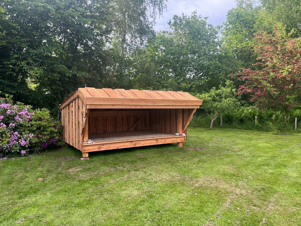 På den store terrasse kan du vælge enten at sidde i skygge under overdækningen eller flytte ud i solen og slappe af i en af liggestolene eller hængekøjen. Børn kan lege i sandkassen eller tage en tur i gyngen, og på grunden kan I også kaste med bold eller spille medbragte havespil.