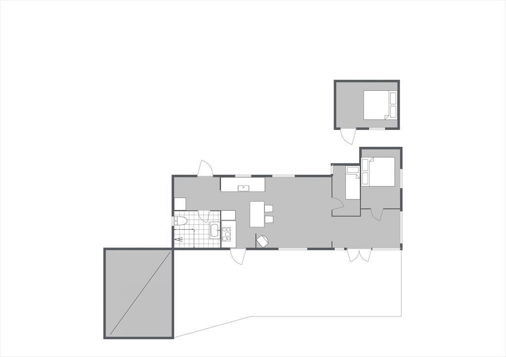 Husets dagligstue ligger midt i huset mellem spisestuen og det åbne køkken, så mens nogle i familien slapper af i sofaen med chaiselong eller dækker bord, kan du tænde indbygningsovnen og gøre klar til aftenens steg. Der er også mulighed for at sætte sig og få en snak ved barstolene ved køkkendisken under forberedelserne. Ved spisebordet kan I kigge ud i haven fra de store vinduespartier og eventuelt åbne døren ud til terrassen.