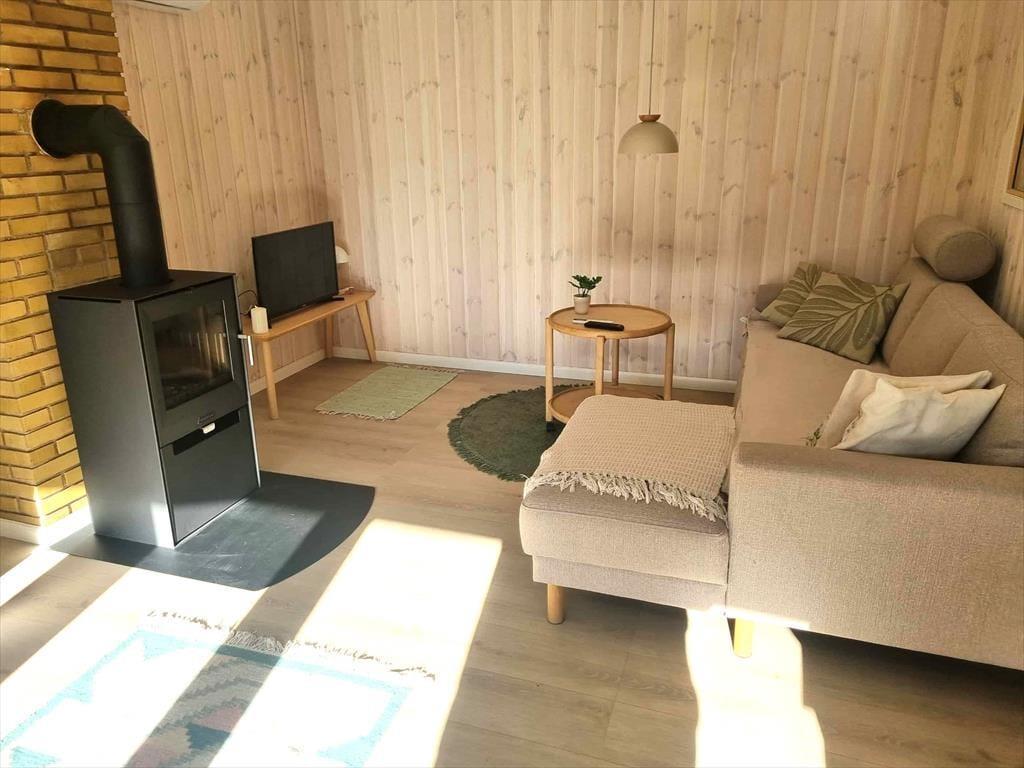 Husets dagligstue ligger i forbindelse med det åbne køkken, så mens nogle i familien slapper af i sofaen, kan du tænde ovnen og gøre klar til en god middag. Der er også mulighed for at sætte sig og få en snak ved spisebordet eller spille et hyggeligt brætspil.