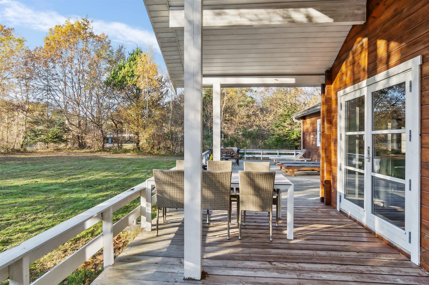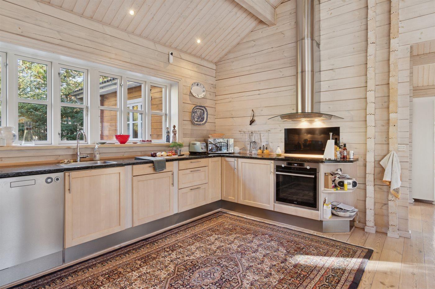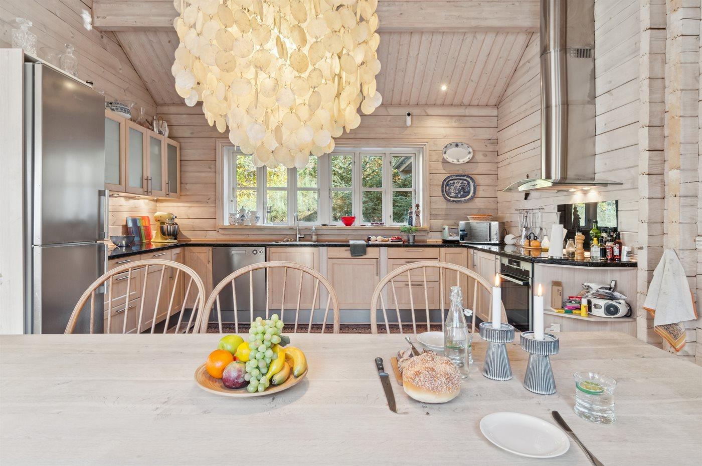 I dette fantastiske sommerhus kan I nyde ferien med højt til himlen og så sandelig også højt til loftet. Der er loft til kip i hele huset - med op til 4 meter til loftet. Der er masser af lys og luft i dette dejlige og lyse bjælkehus opført i kvalitetsmaterialer. Det store køkkenalrum med masser af plads og kombineret med stuen giver mulighed for hyggeligt samvær med familie og venner. Der er tillige klaver.