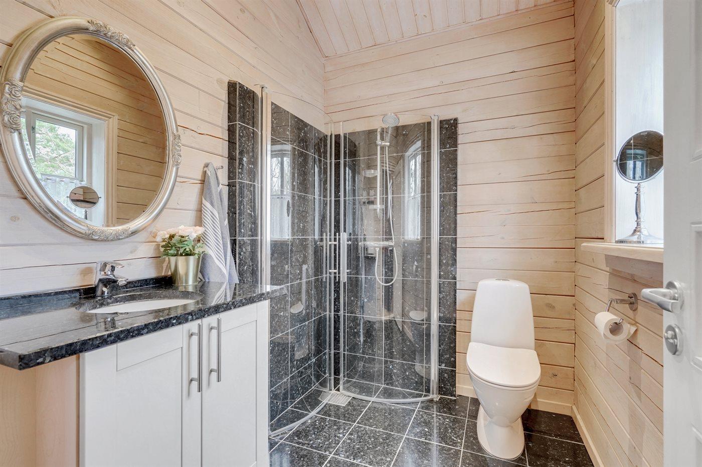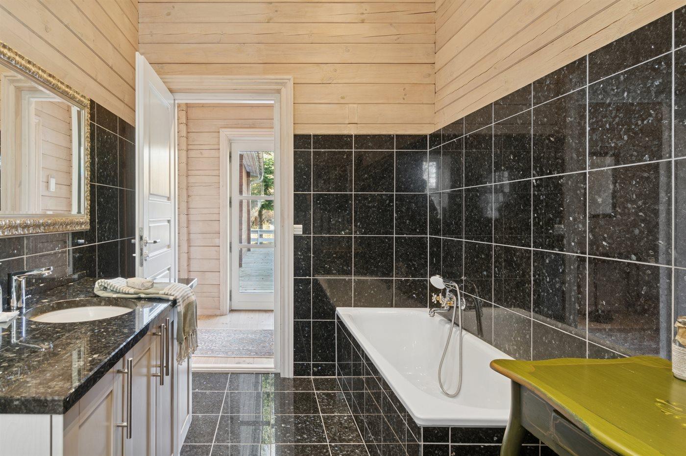 Der er 1 badeværelse med gulvvarme, badekar og bruseniche samt 1 badeværelse med gulvvarme og bruseniche.