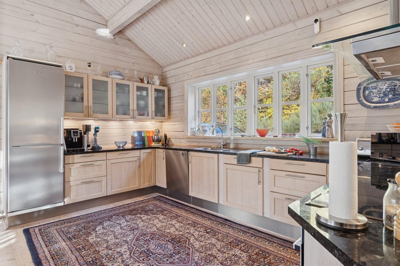 Køkkenet er udstyret med 1 køleskab. Der er 4 keramiske kogeplader, varmluftovn samt opvaskemaskine.