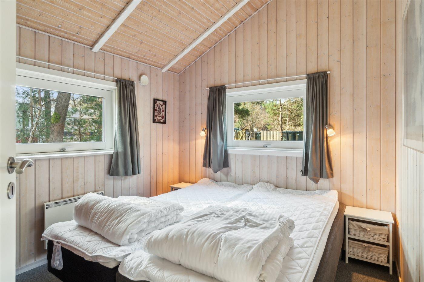 Der er i alt 4 soveværelser. Sovepladserne fordeler sig på: 4 sovepladser i dobbeltsenge. 2 sovepladser i køjeseng. 2 sovepladser i sovesofa (dobbelt). 2 sovepladser på madrasser. 2 af disse sovepladser befinder sig på husets hems. Derudover er der 1 stk. barneseng.