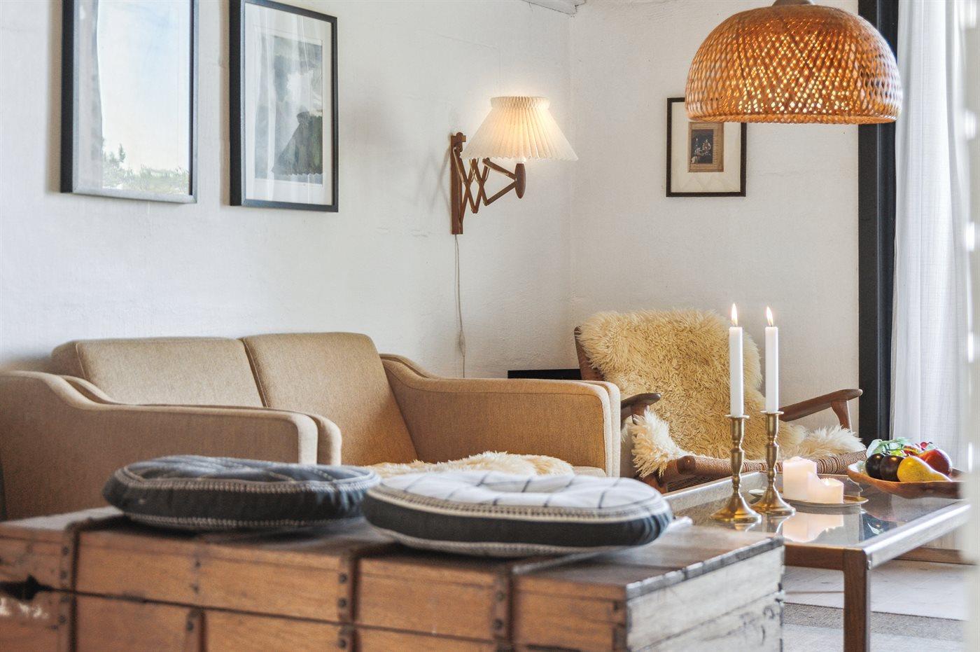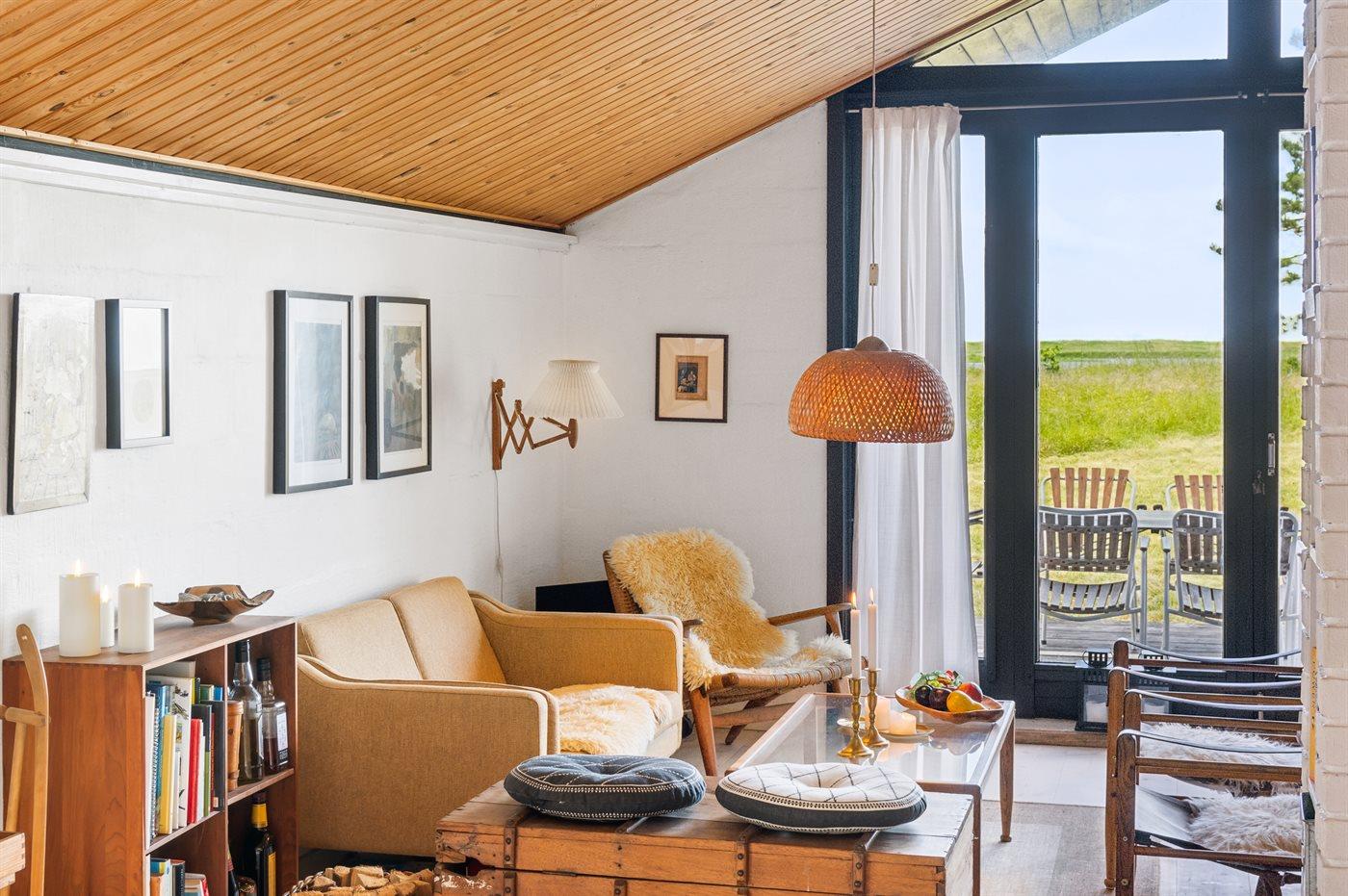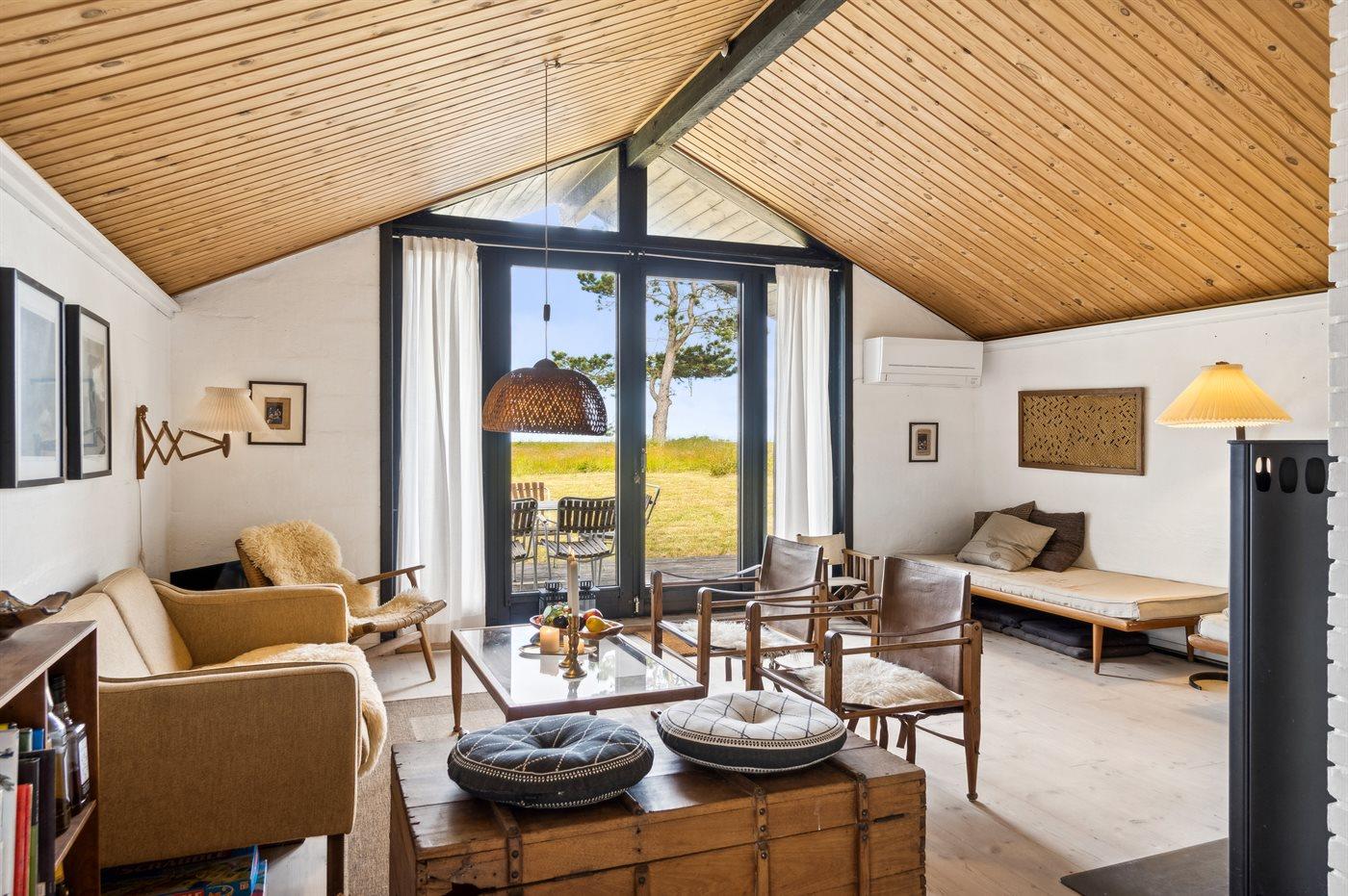 Den flotte udsigt og de smukke solnedgange kan nydes fra husets stue og køkkenalrum samt fra terrassen, hvor en del er overdækket. Køkkenalrummet er i åben forbindelse med stuen. Der er 2 soveværelser. I det ene er der foruden dobbeltsengen en køjeseng (pga. målene er den bedst egnet til børn og unge). I badeværelset er der bruseniche.