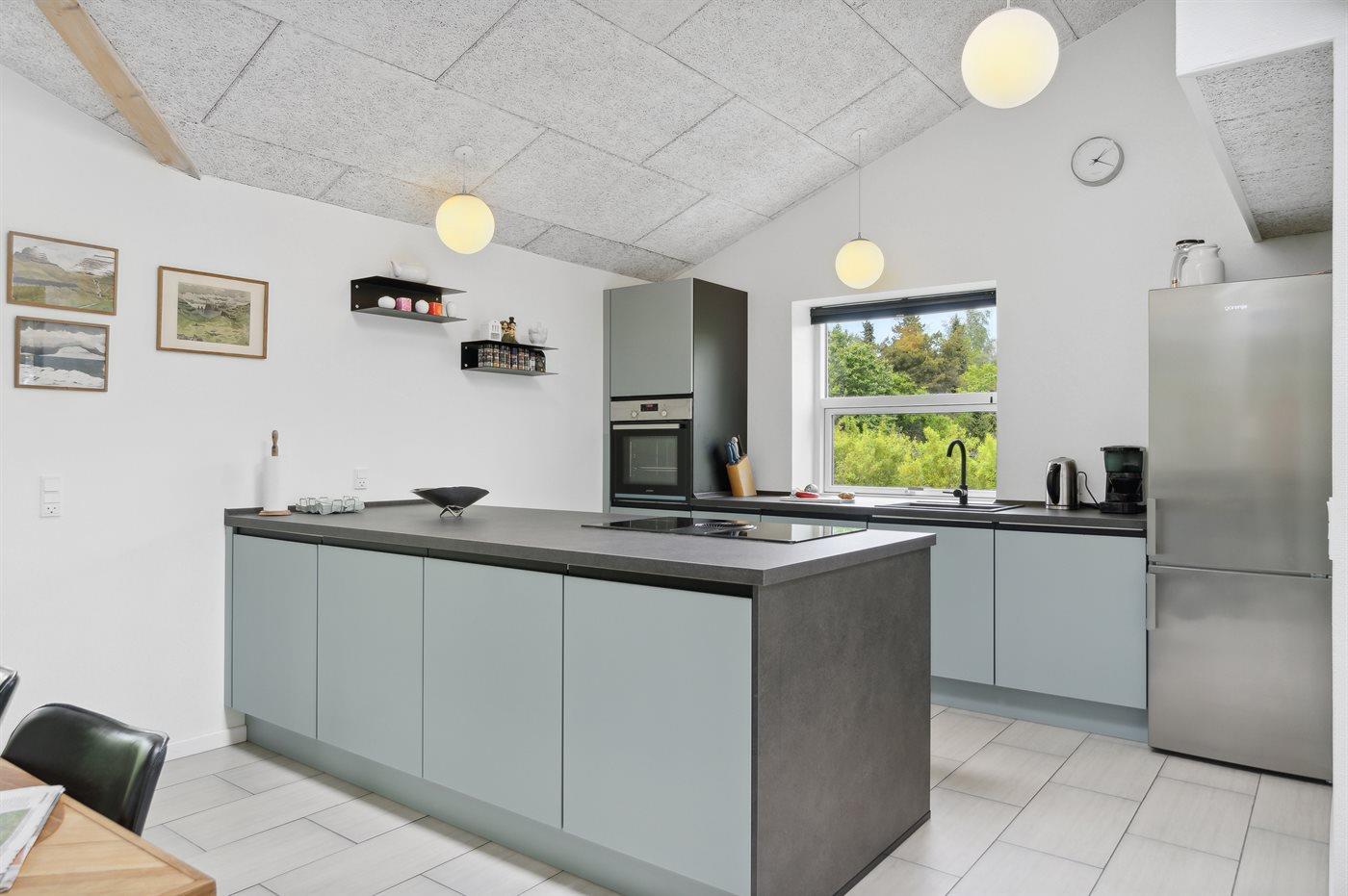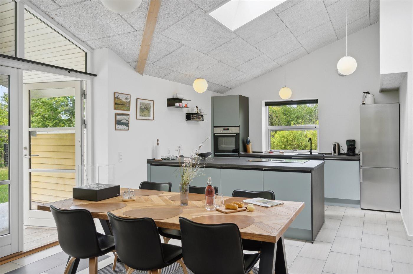 Køkkenet er udstyret med 1 køleskab. Der er 4 induktionskogeplader, varmluftovn, mikrobølgeovn samt opvaskemaskine.