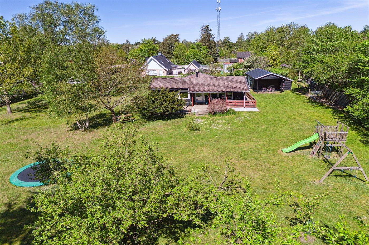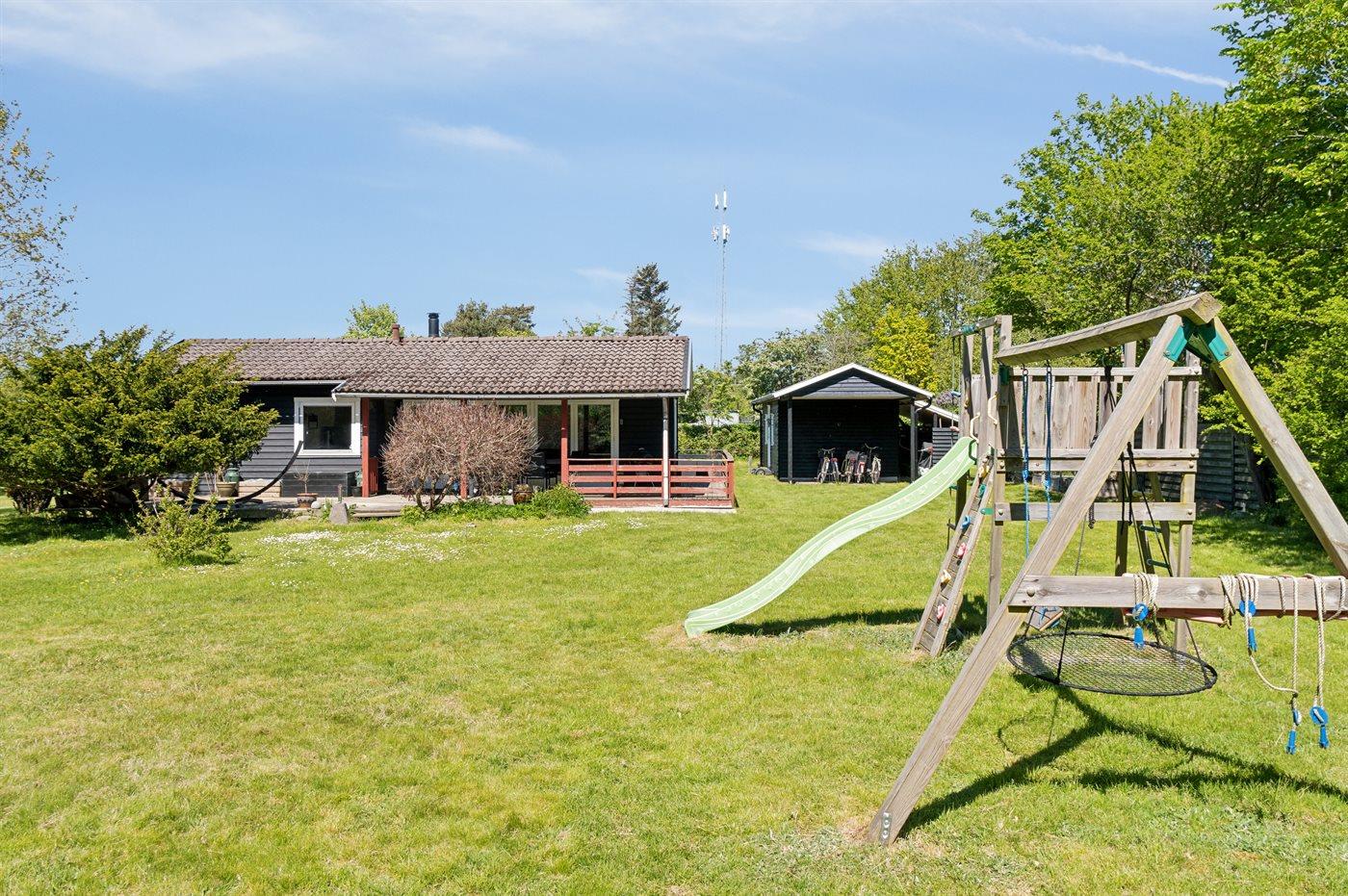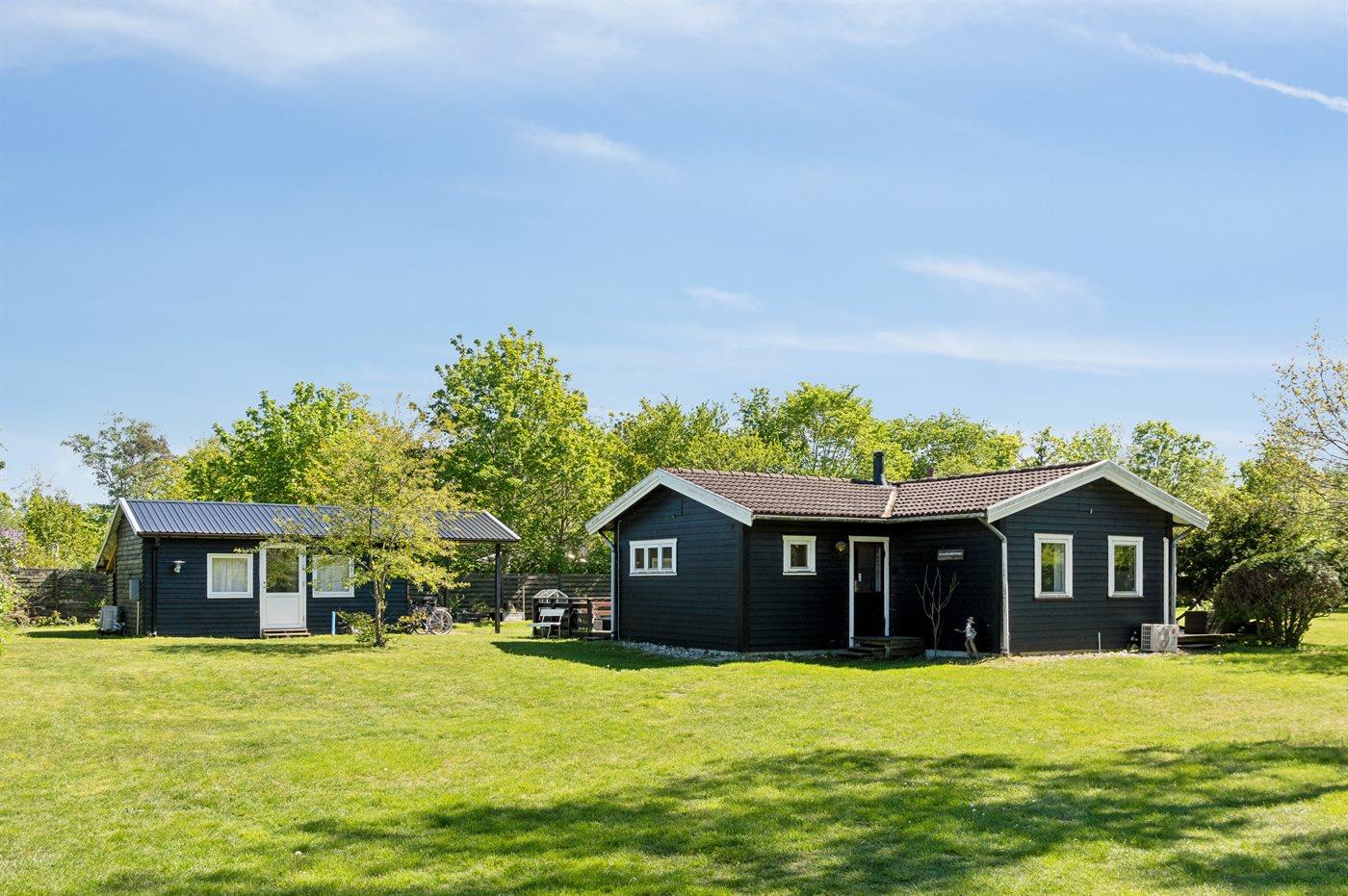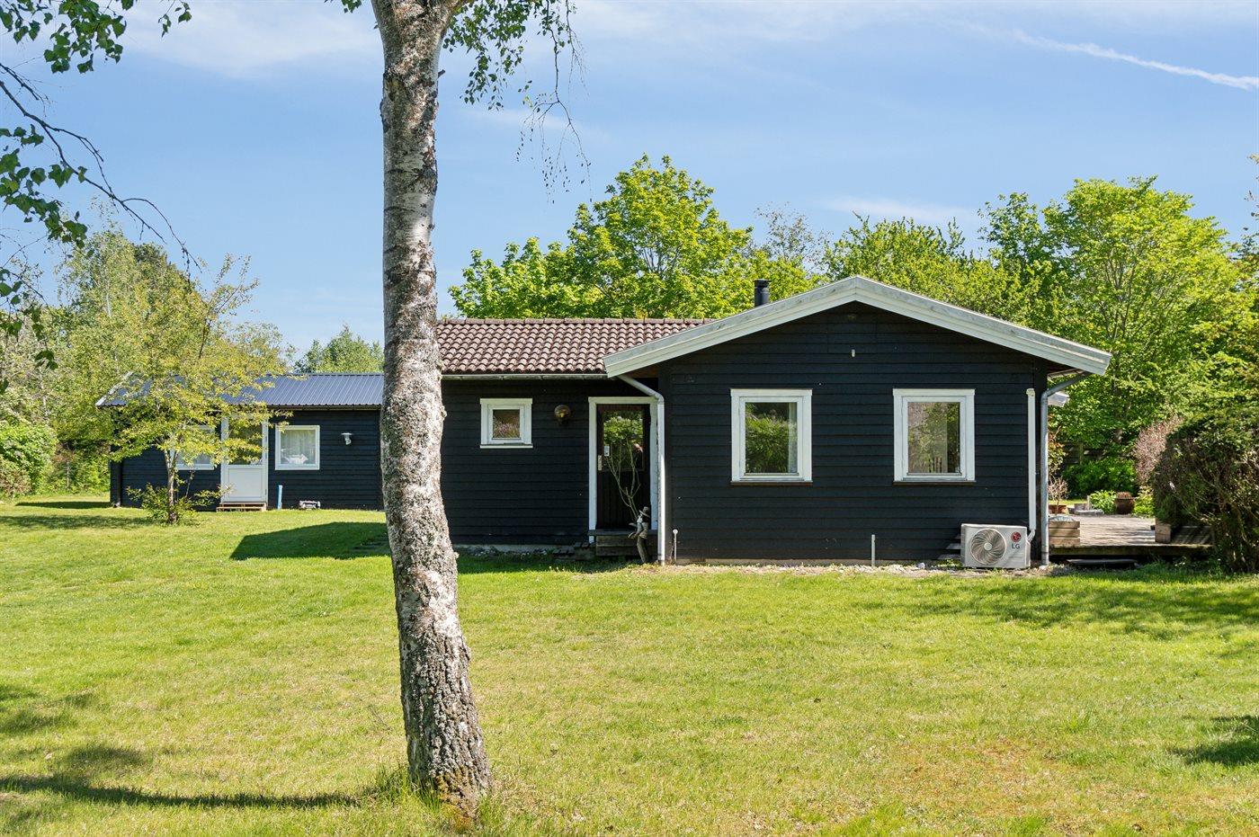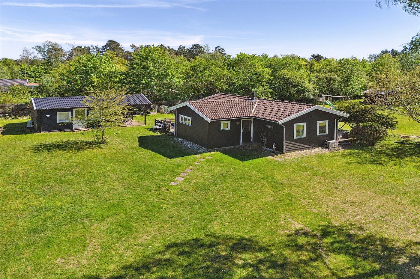 Huset ligger på en stor grund med legeredskaber til børnene og med mulighed for leg og spil på den store græsplæne. I selve huset er omdrejningspunktet det nyere og flotte køkken i forbindelse med spiseplads og stue. Fra stuen er der udgang til en god overdækket terrasse. Der er 2 soveværelser i selve huset med henholdsvis en dobbeltseng og en enkeltseng (bedst egnet til børn). Det flotte og moderne badeværelse fra 2023 har gulvvarme og bruseniche. Huset opvarmes energivenligt via luft-til-luft varmepumpe og til de hyggelige stunder er der brændeovn. Det tilstødende anneks er opført i 2023 og ligger under 10 meter fra selve huset. Her er 2 soveværelser med hver 2 sovepladser. Hvert værelse er udstyret med egen luft-til-luft varmepumpe, og der er ovenlysvinduer, som bringer masser af lys.