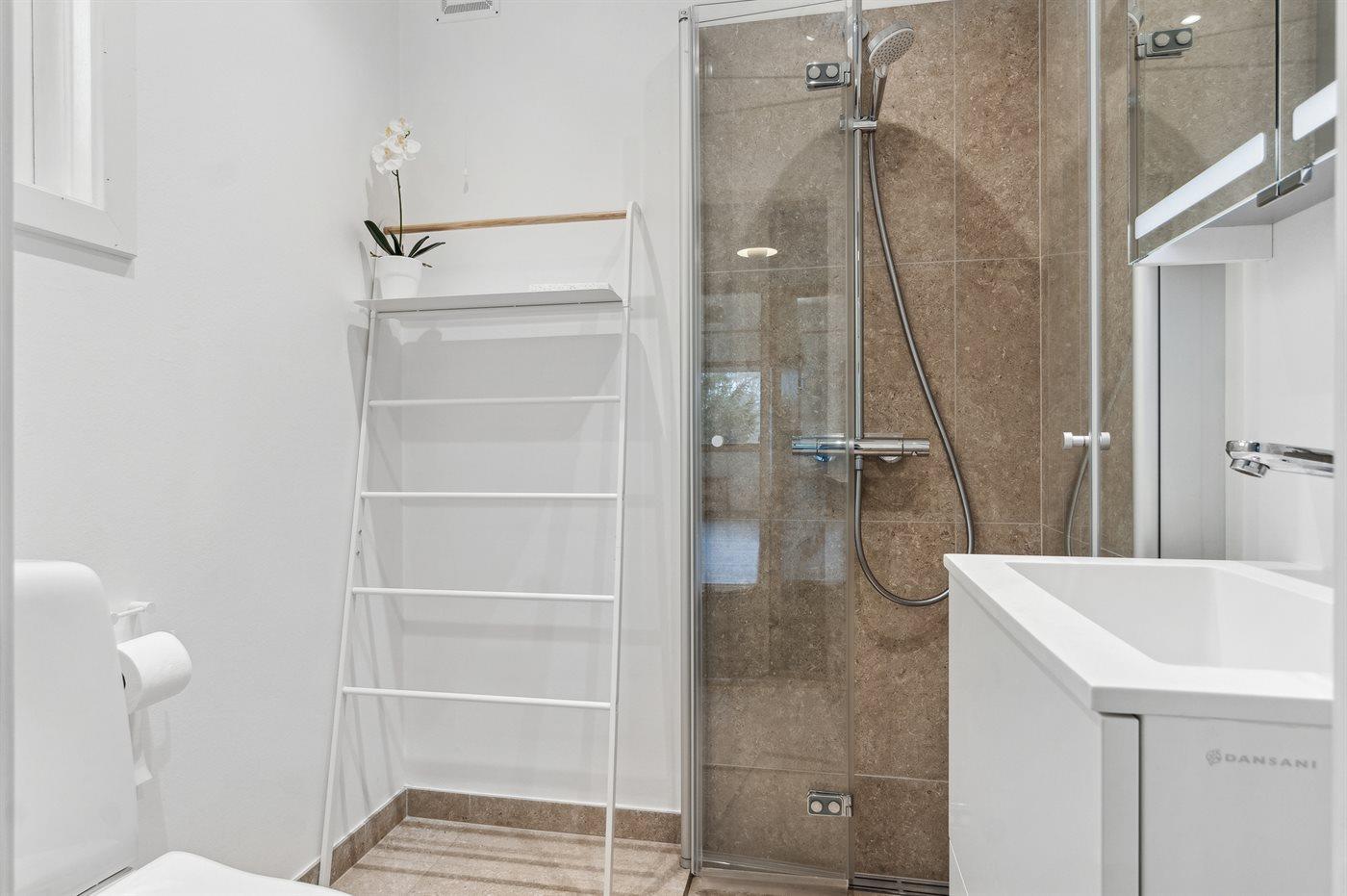 Der er 1 badeværelse med bruseniche og 1 toilet.. Der er gulvvarme på 1 badeværelse.