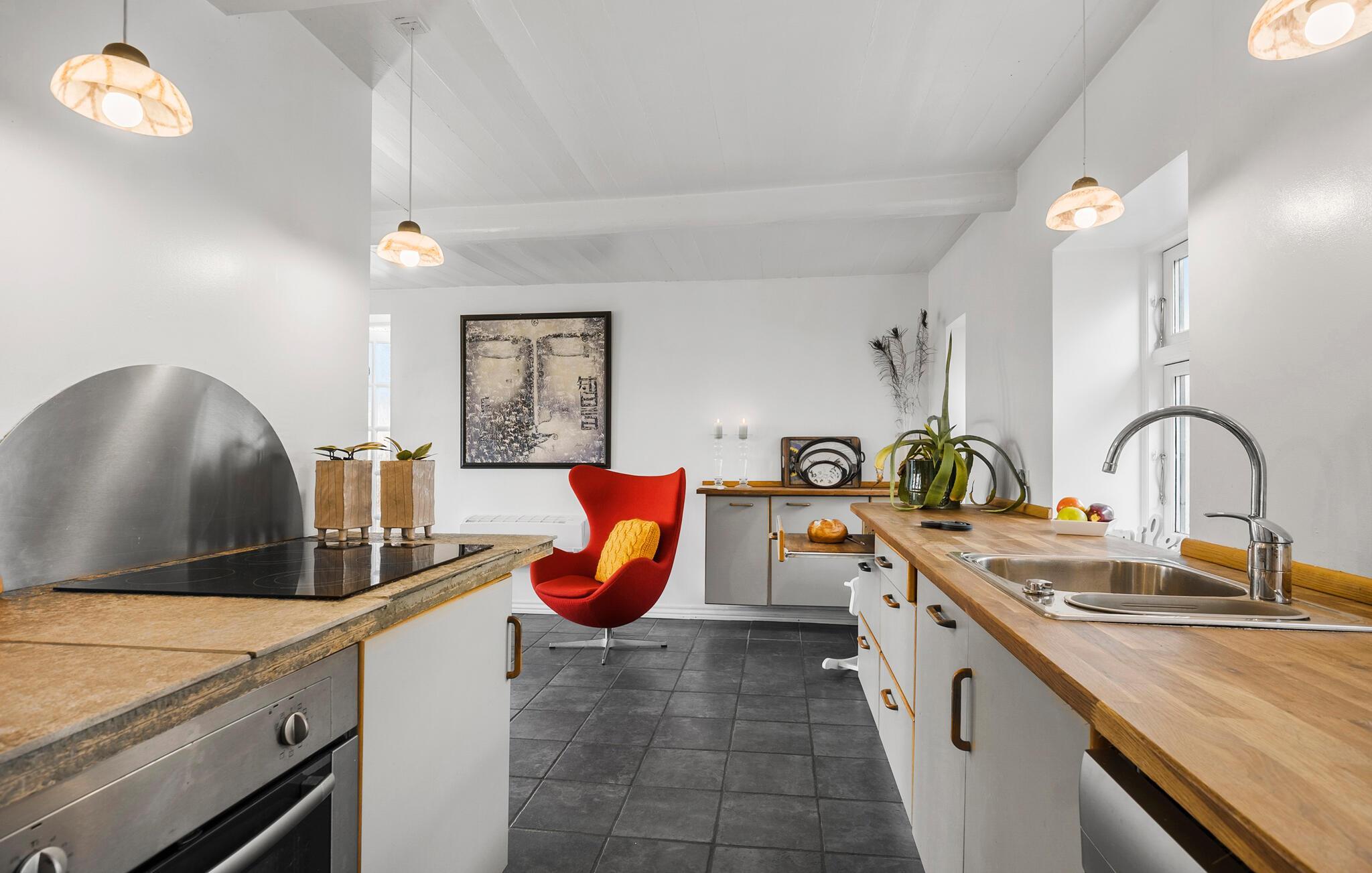 Glæd jer til en afslappende ferie i dette hyggelige hus på skønne Sejerø, som giver jer en perfekt kombination af komfort og natur. Kom ind og lad jer fortrylle af husets indbydende atmosfære. Den rummelige opholdsstue med store vinduer lægger op til at slappe af. Nyd det stilfulde interiør med moderne møbler og fine detaljer. De komfortable siddepladser tilbyder jer det ideelle sted til sociale aftener eller afslappede læsetimer. Det veludstyrede køkken med højkvalitets træbordplader byder på alt, hvad I skal bruge for at tilberede lækre måltider.