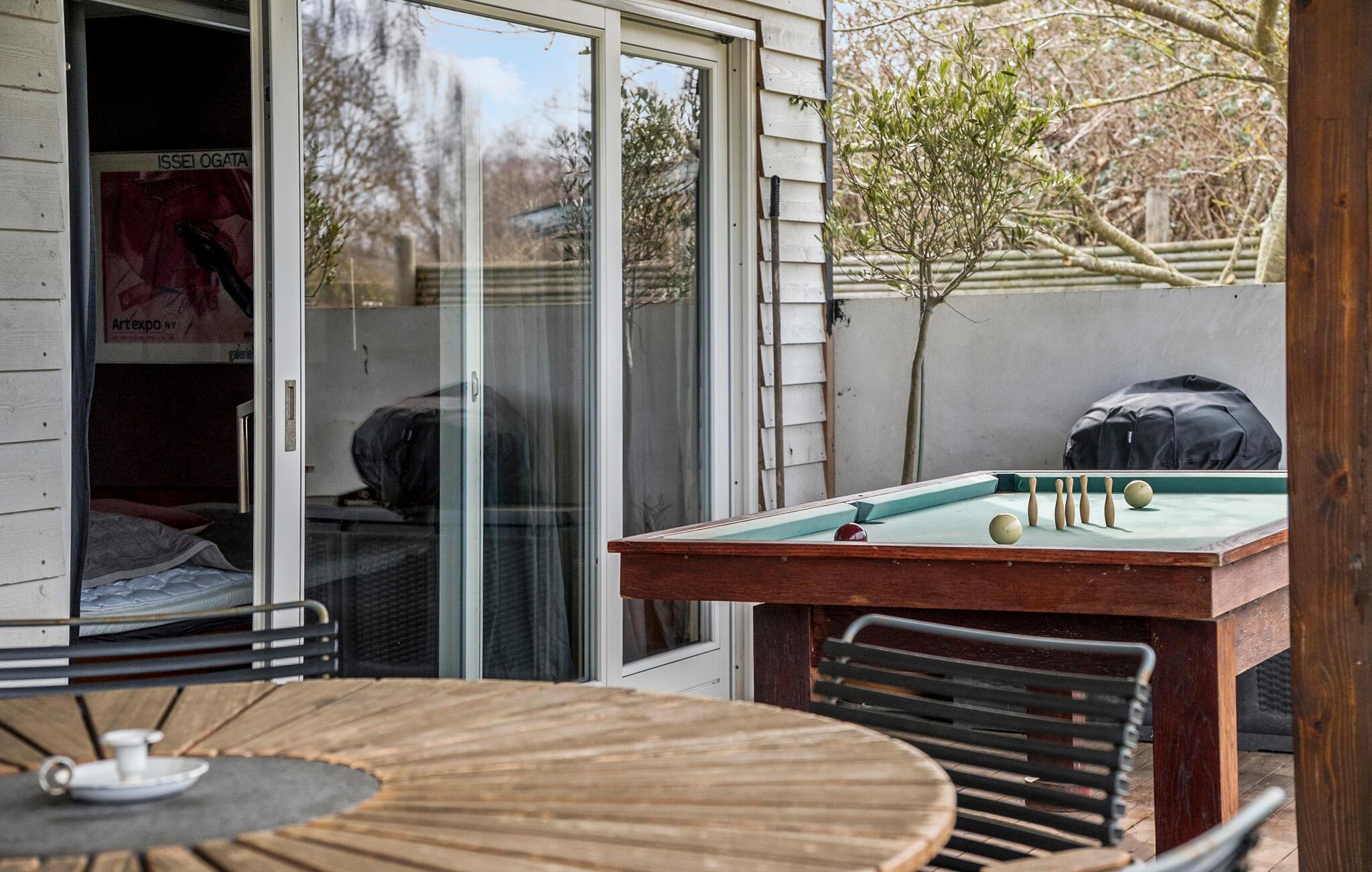 Udenfor venter afslappende timer på den store træterrasse med grill, behagelige havemøbler og liggestole. Nyd afslappede grillaftener, spil en omgang udendørsbillard, eller arranger spændende vikingespil-turneringer i haven. Et rustikt bålsted i det grønne indbyder til at afslutte dagen i fællesskab.