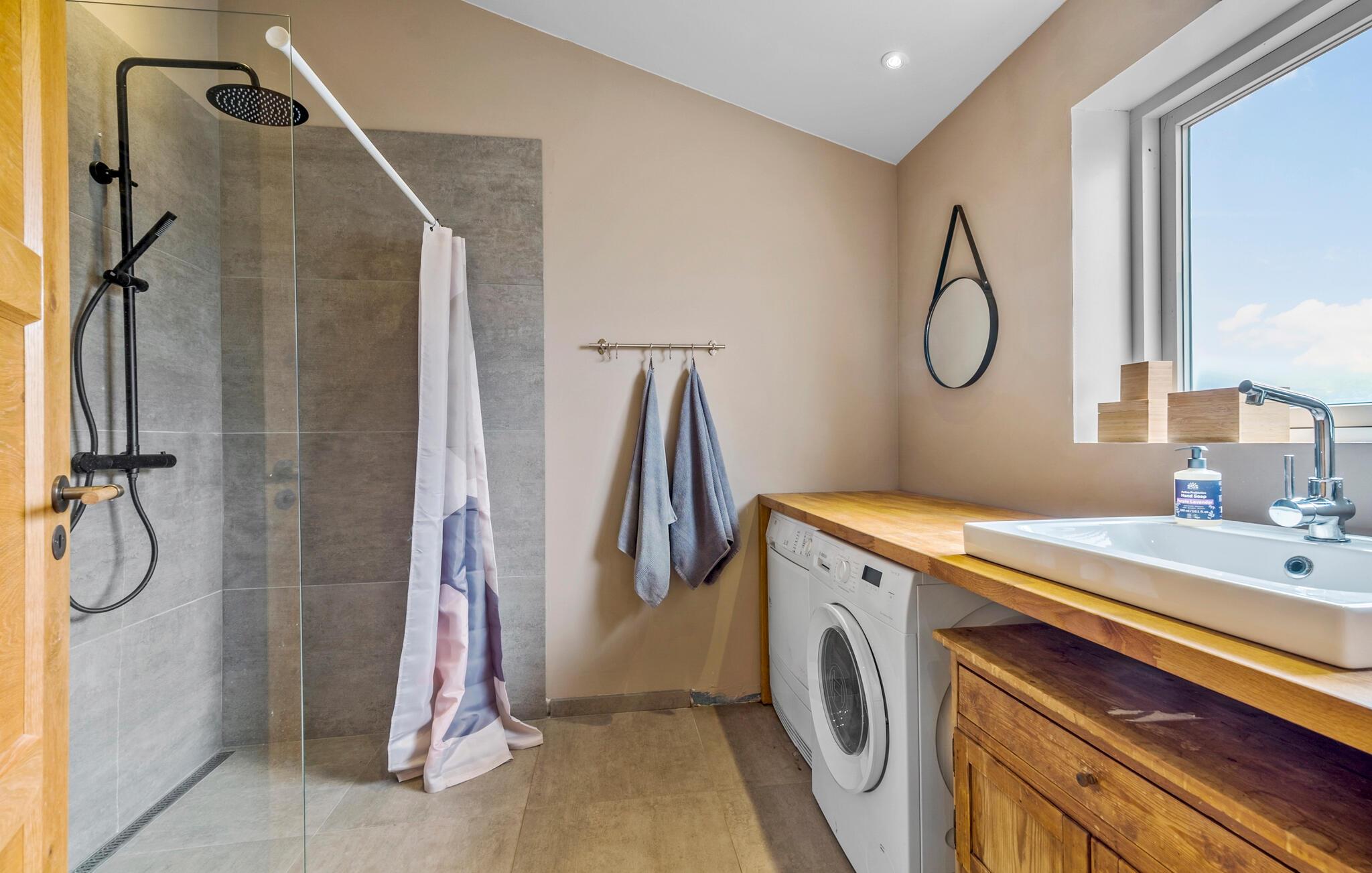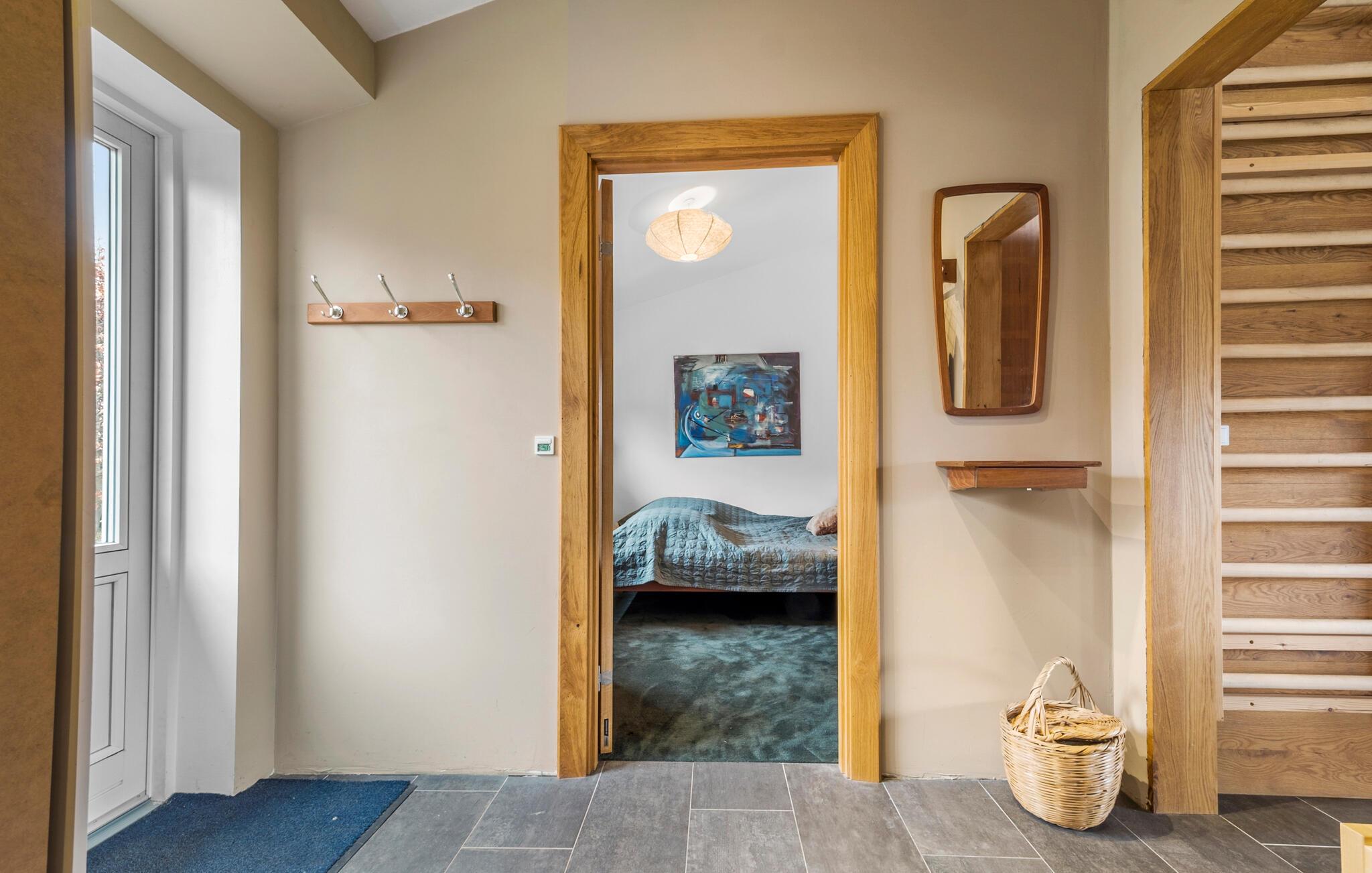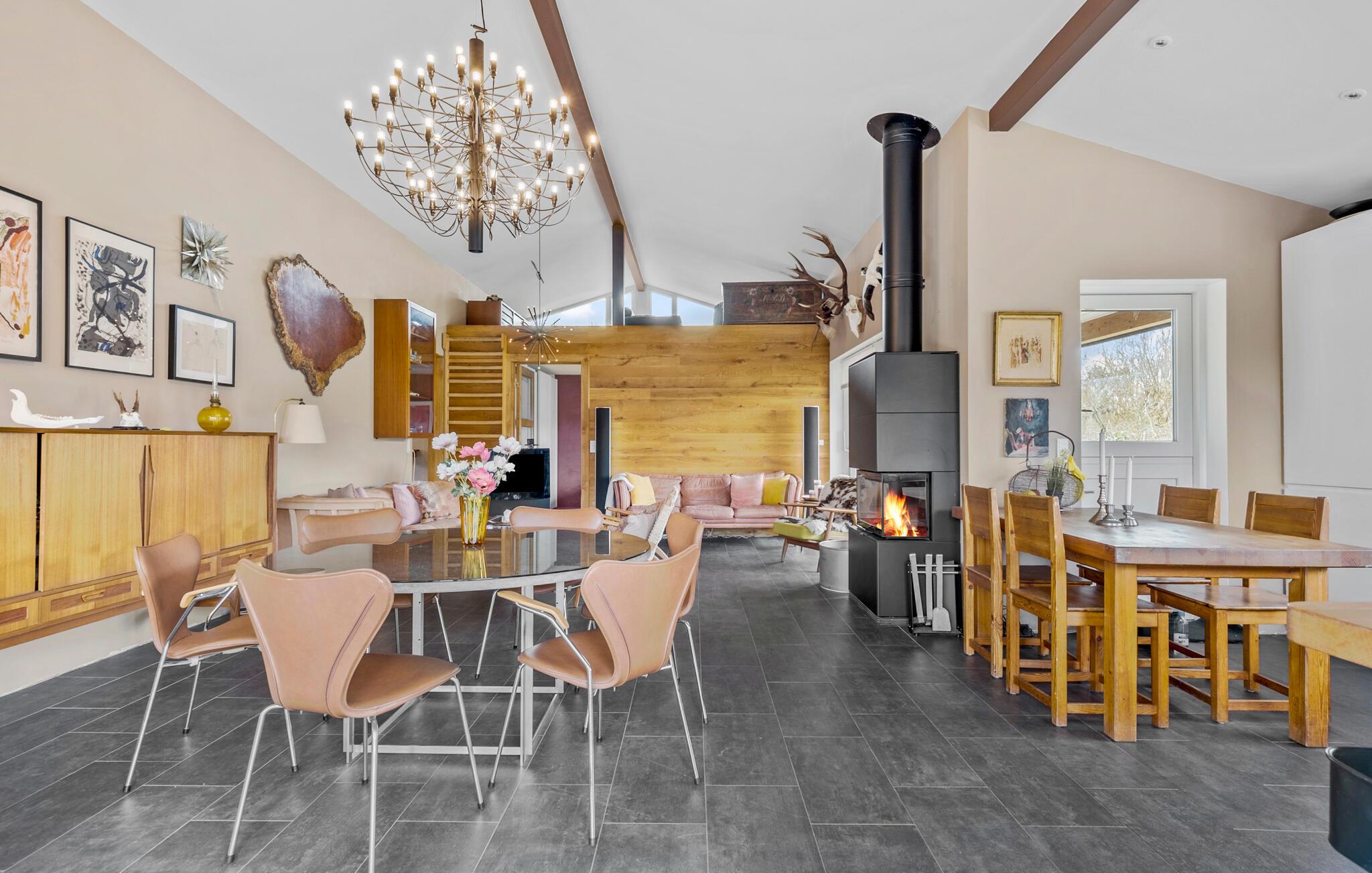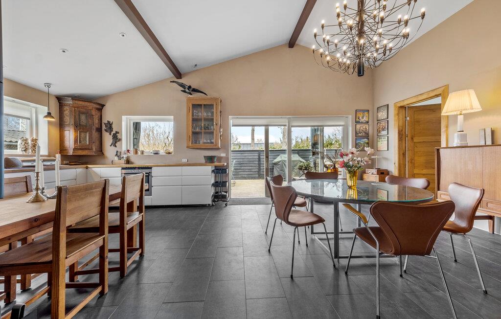 Glæd jer til en vidunderlig pause med familien eller venner i dette hyggelige feriehus på en idyllisk ø. Indenfor venter en stilfuldt indrettet opholdsstue. Hyg jer foran den knitrende brændeovn, eller nyd jeres måltider i det rummelige køkken med spiseplads, som indbyder til fælles madlavning. Den store stue byder med sine komfortable siddepladser på god plads til hele familien, til spil, læsning eller hyggeligt samvær.