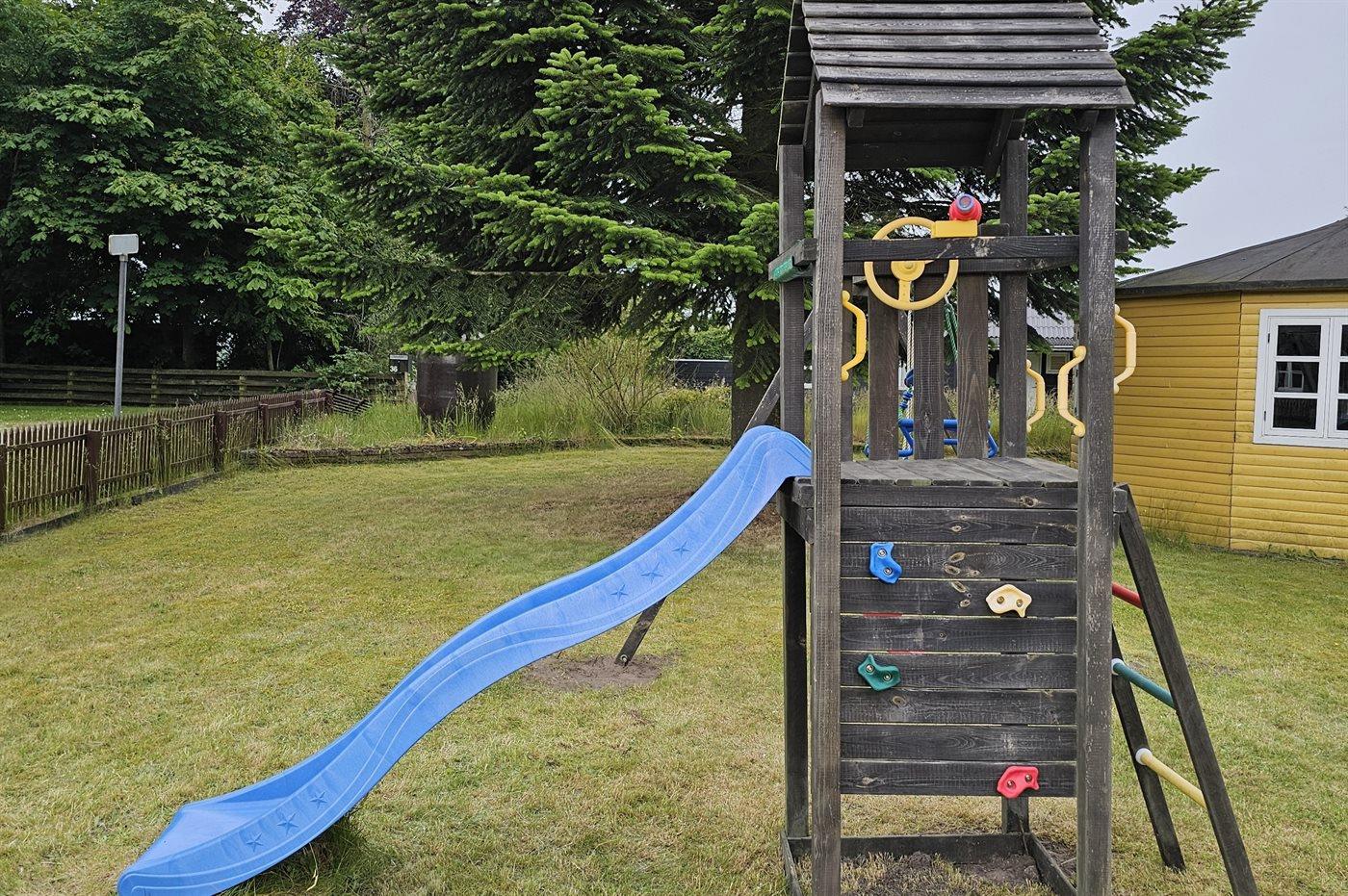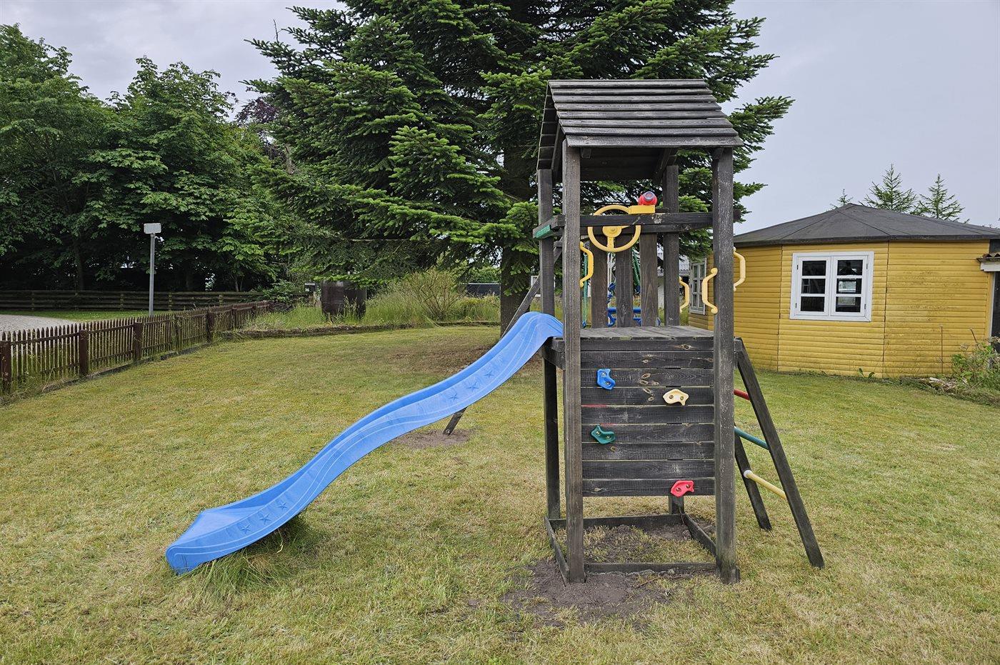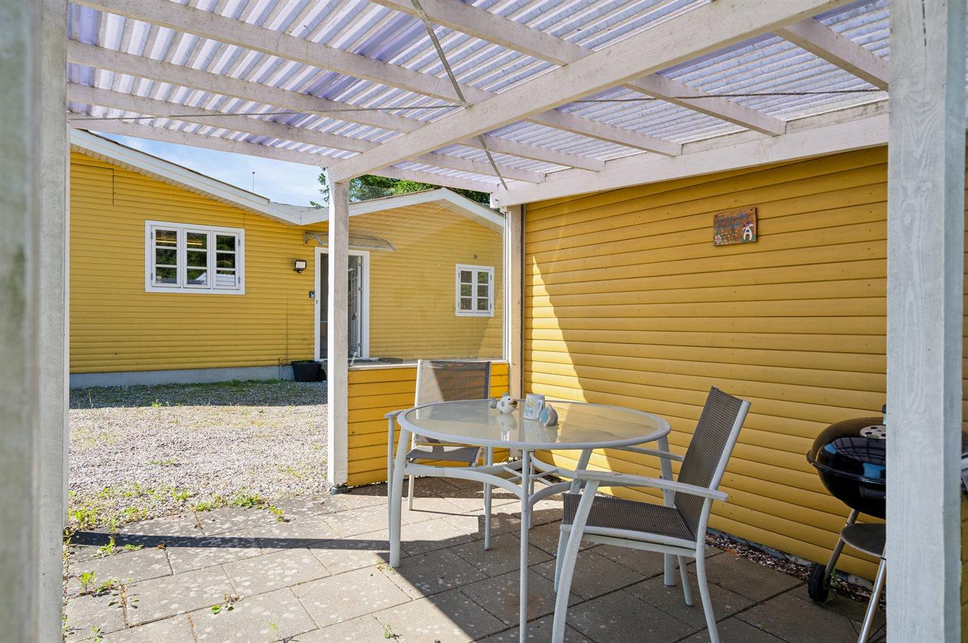 Ferieboligen er beliggende på en 1200 m² stor naturgrund. Der er 6500 m til havet. Nærmeste forretning er beliggende i en afstand af 3000 m. Til ferieboligen hører åbent terrasseareal. Desuden er der overdækket terrasse. Ligeledes er der adgang til udestue. Legetårn. Grill til rådighed. Parkering ved ferieboligen.