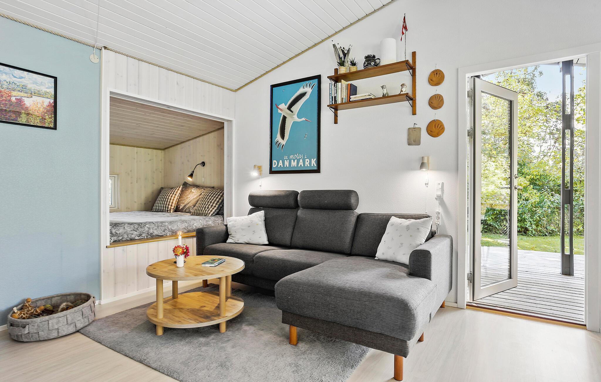 Velkommen til dette lyse, rummelige og velindrettede feriehus. Her kan I virkelig gå helt ned i gear og tilbringe en masse kvalitetstid sammen, for eksempel med at spille kort, brætspil og Playstation, fordybe jer i spændende ferielæsning, se gode film og serier, tilberede lækre feriemåltider og naturligvis hyggesnakke en masse. Helårsisolation og brændeovn gør også huset yderst velegnet til ophold uden for sommersæsonen.