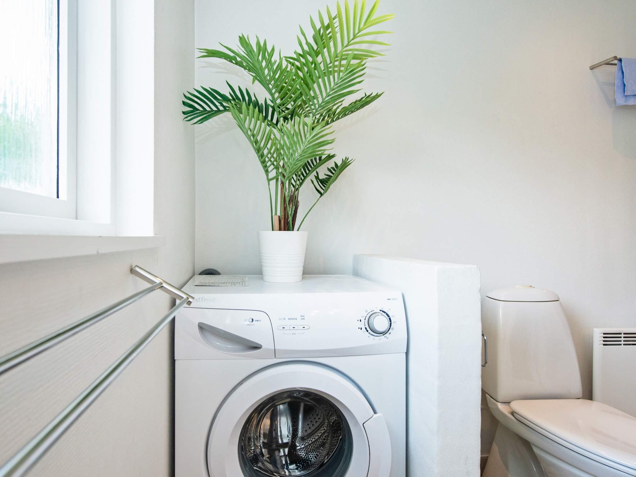Bad/wc: Vaskemaskine, wc, håndvask, bruseniche, gulvvarme