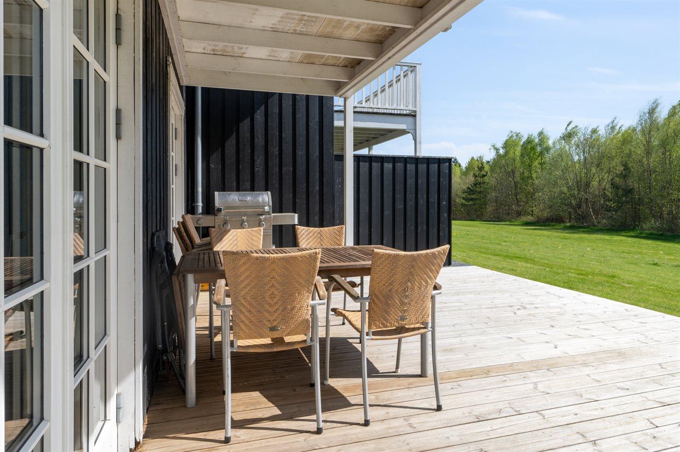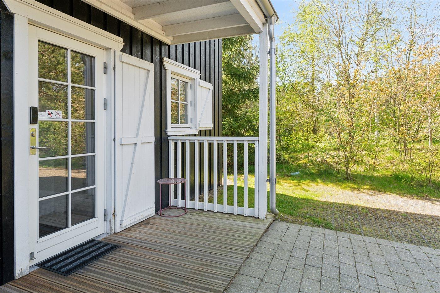 Dette velholdte og flotte sommerhus, som fremstår lyst og moderne, henvender sig i høj grad til børnefamilier. Sommerhuset har en rigtig god planløsning, hvilket også gør det velegnet til en ferie for flere familier. Der findes et skønt terrasseareal, som vender ud mod et grønt areal og skov – her føler man sig i høj grad i ét med naturen.