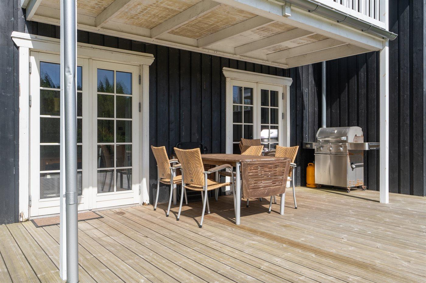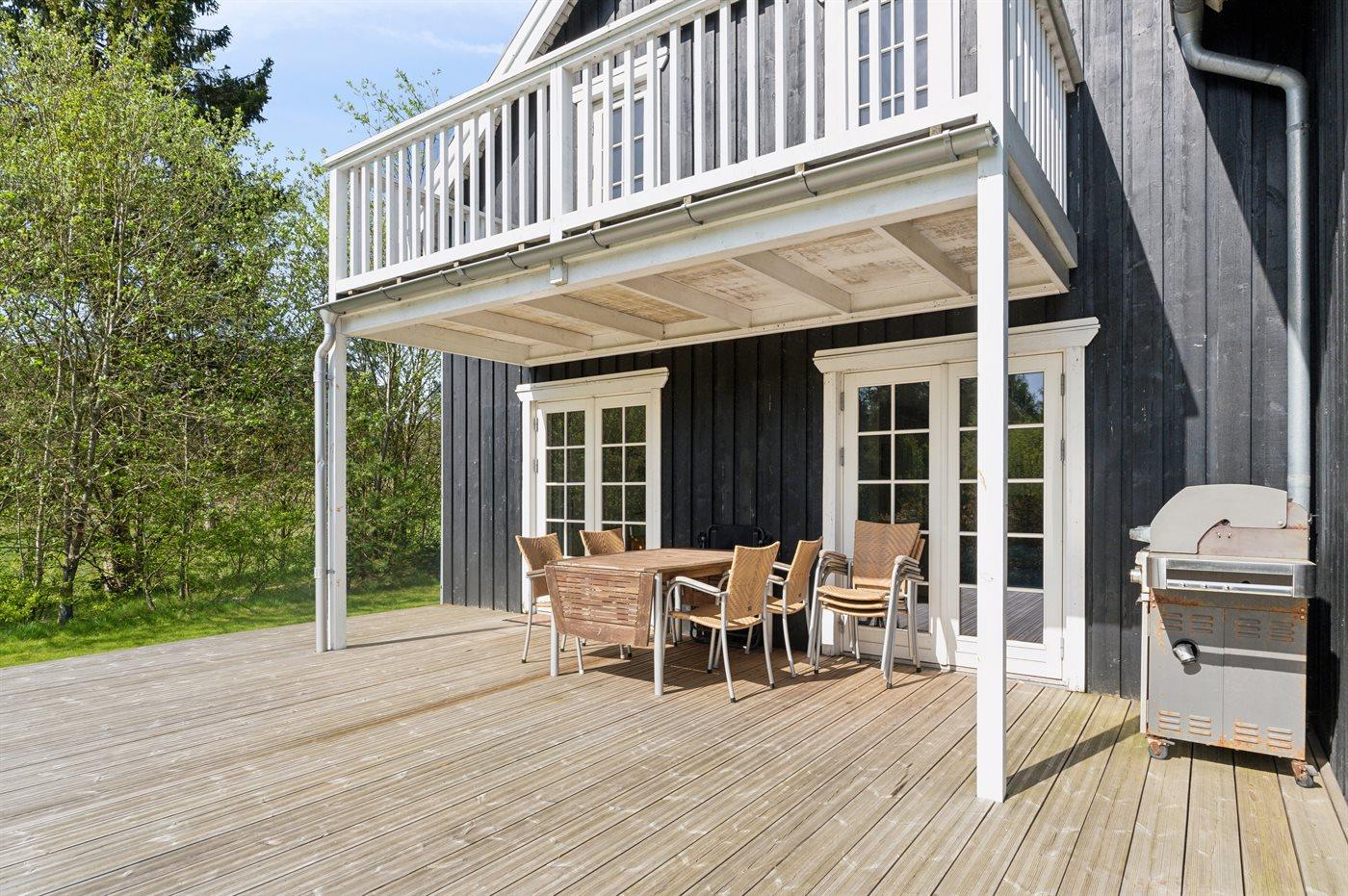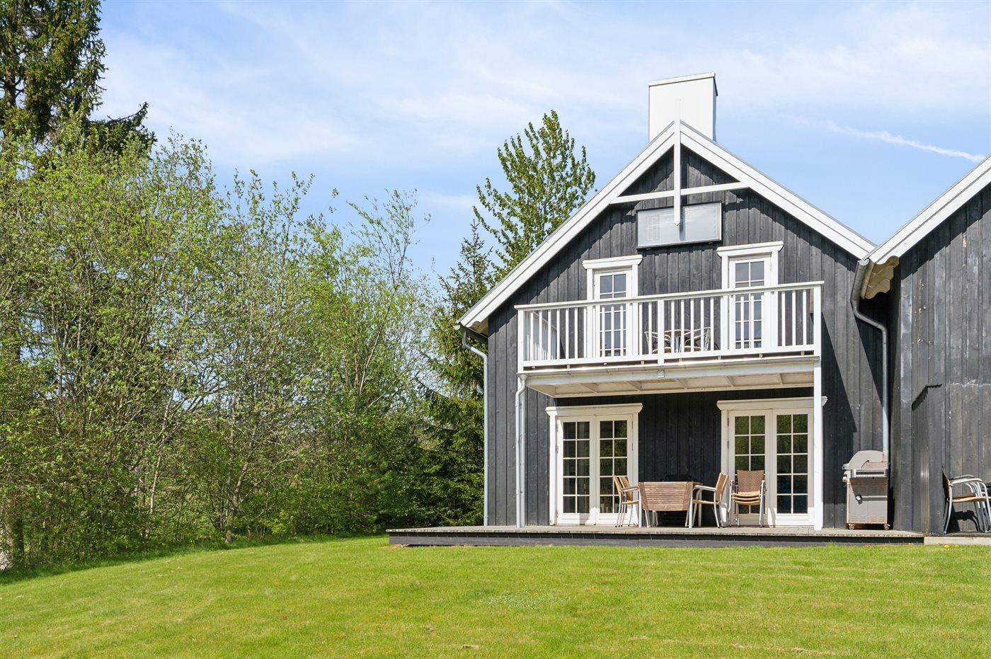 Moderne sommerhus i Gjern med stor terrasse, skovudsigt og adgang til feriecenterets mange aktiviteter.